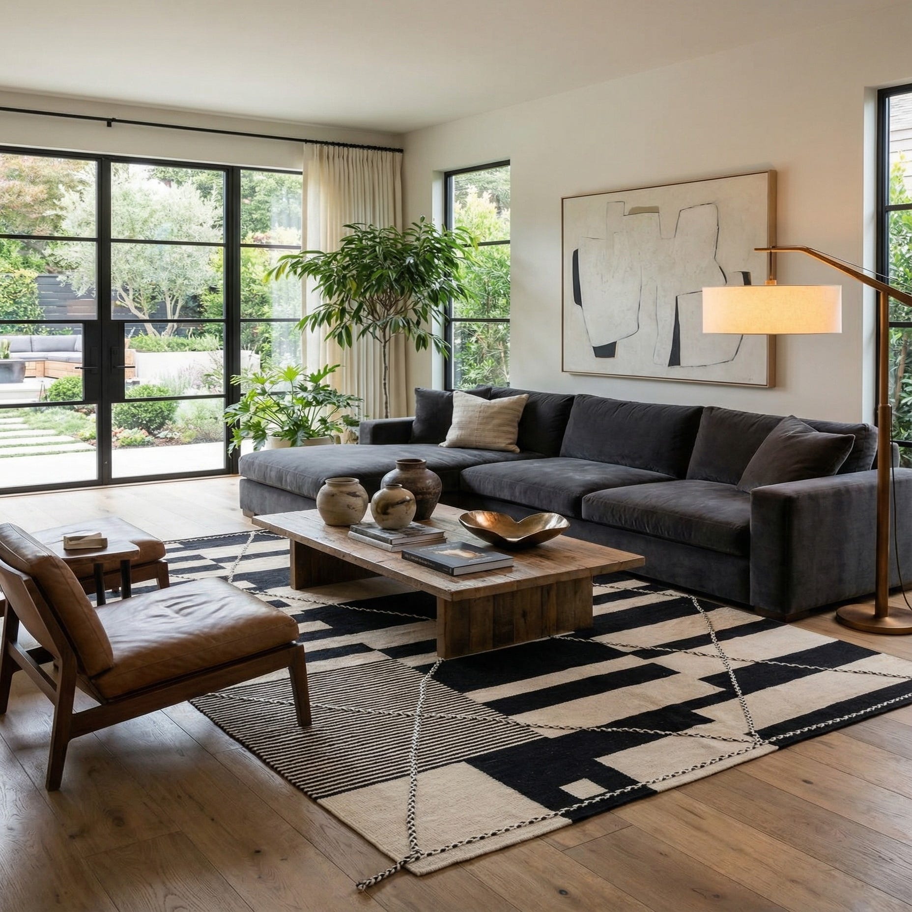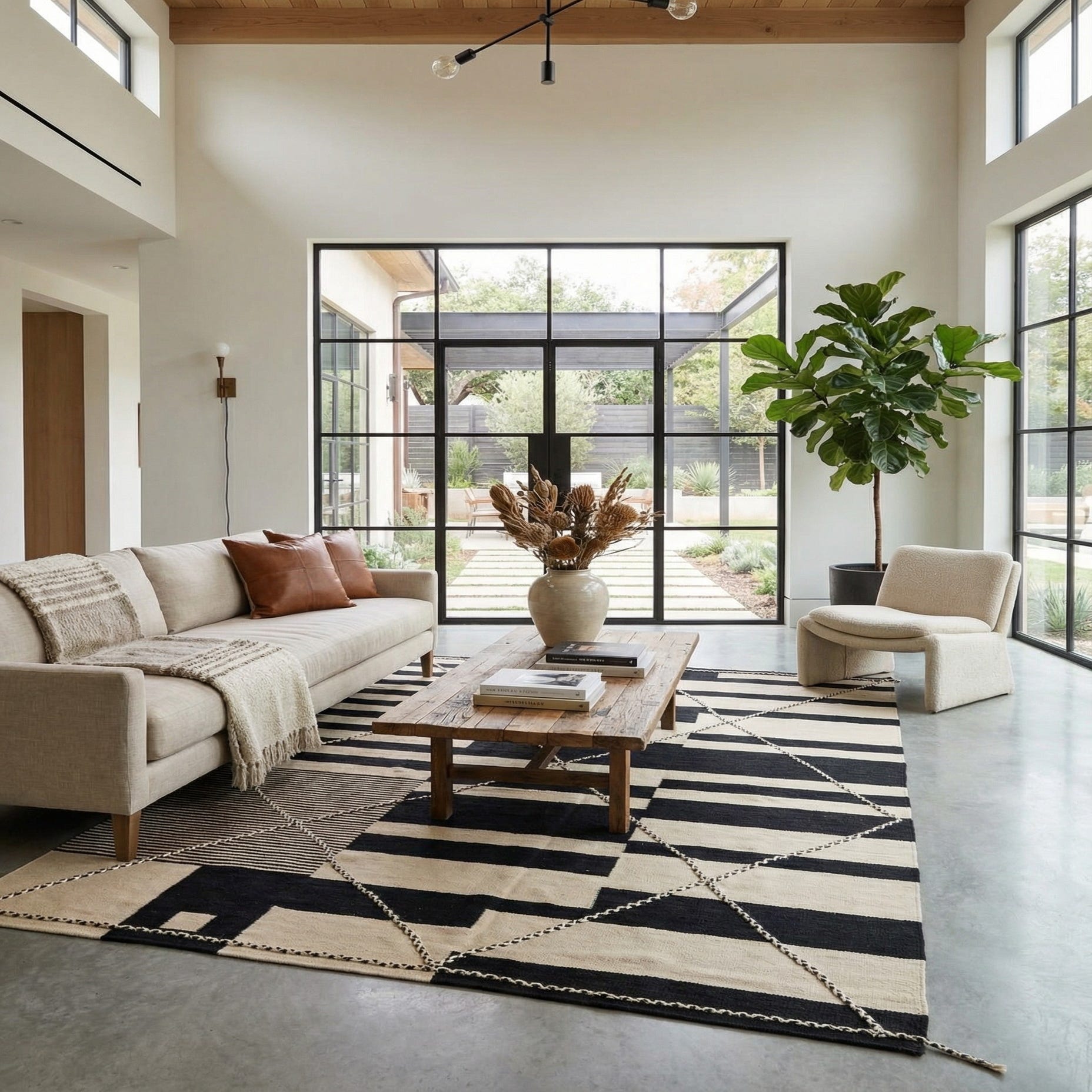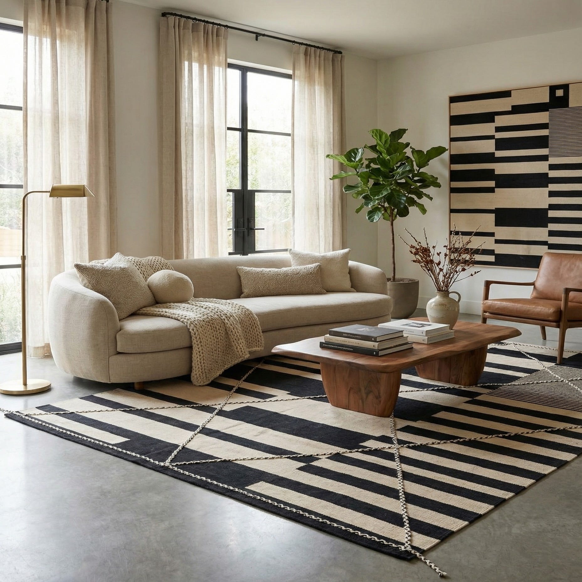 Primary color is Ivory. Colors in this rug include: Ivory, Black.