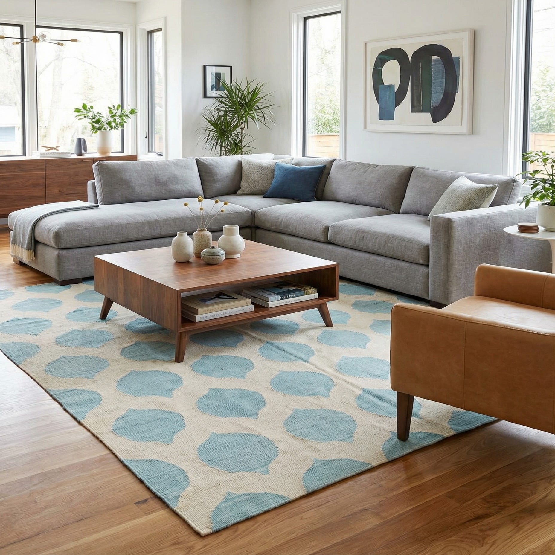 Primary color is Ivory. Colors in this rug include: Ivory, Light Blue.