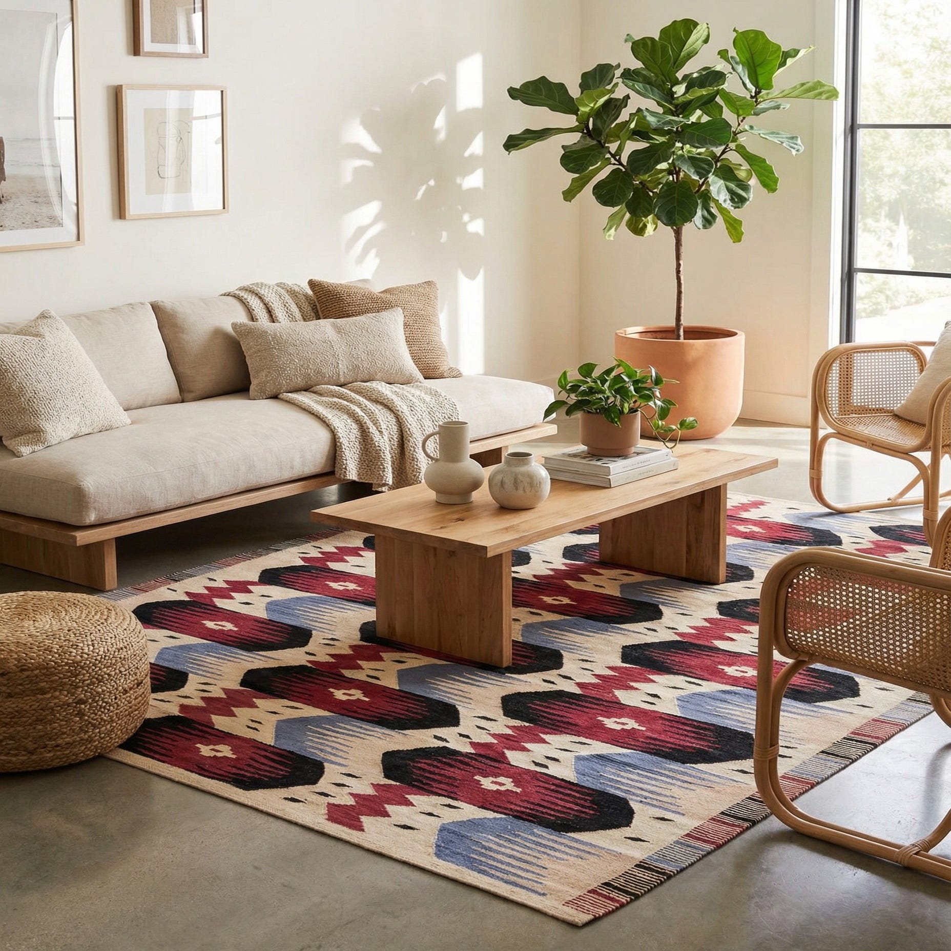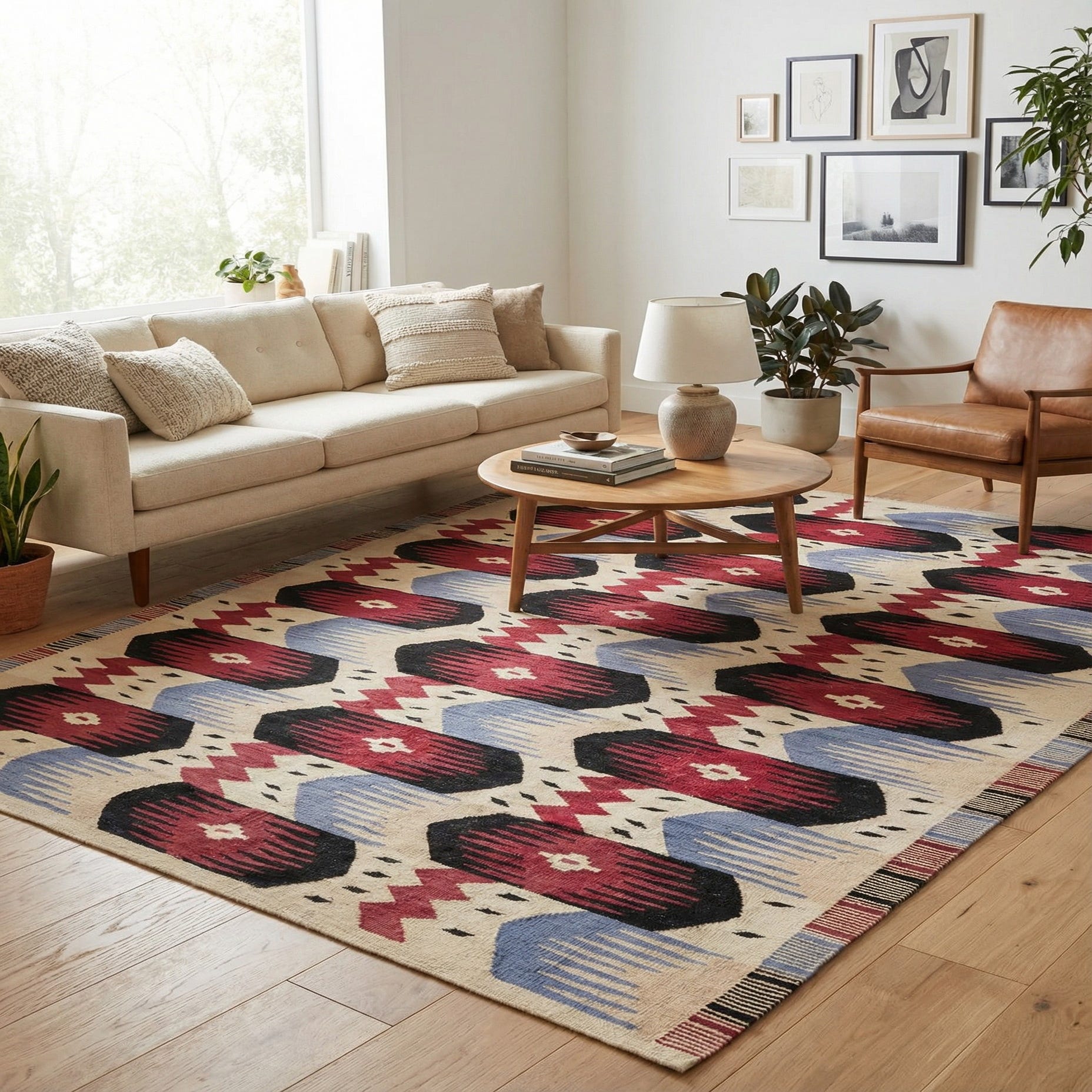 6' 1 x 7' 8 Hand Woven Kilim Modern Wool Rug