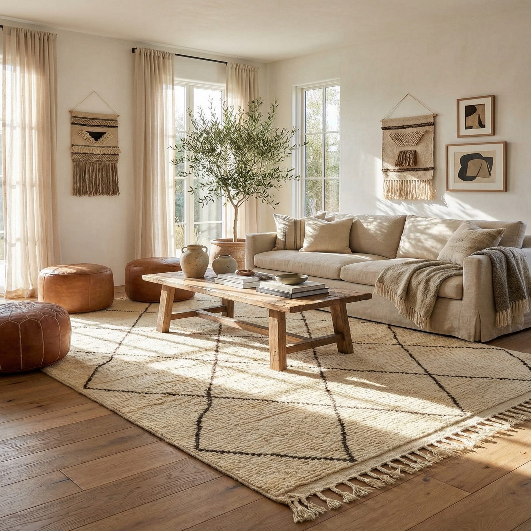 6' 5 x 9' 7 Hand Knotted Moroccan Wool Rug