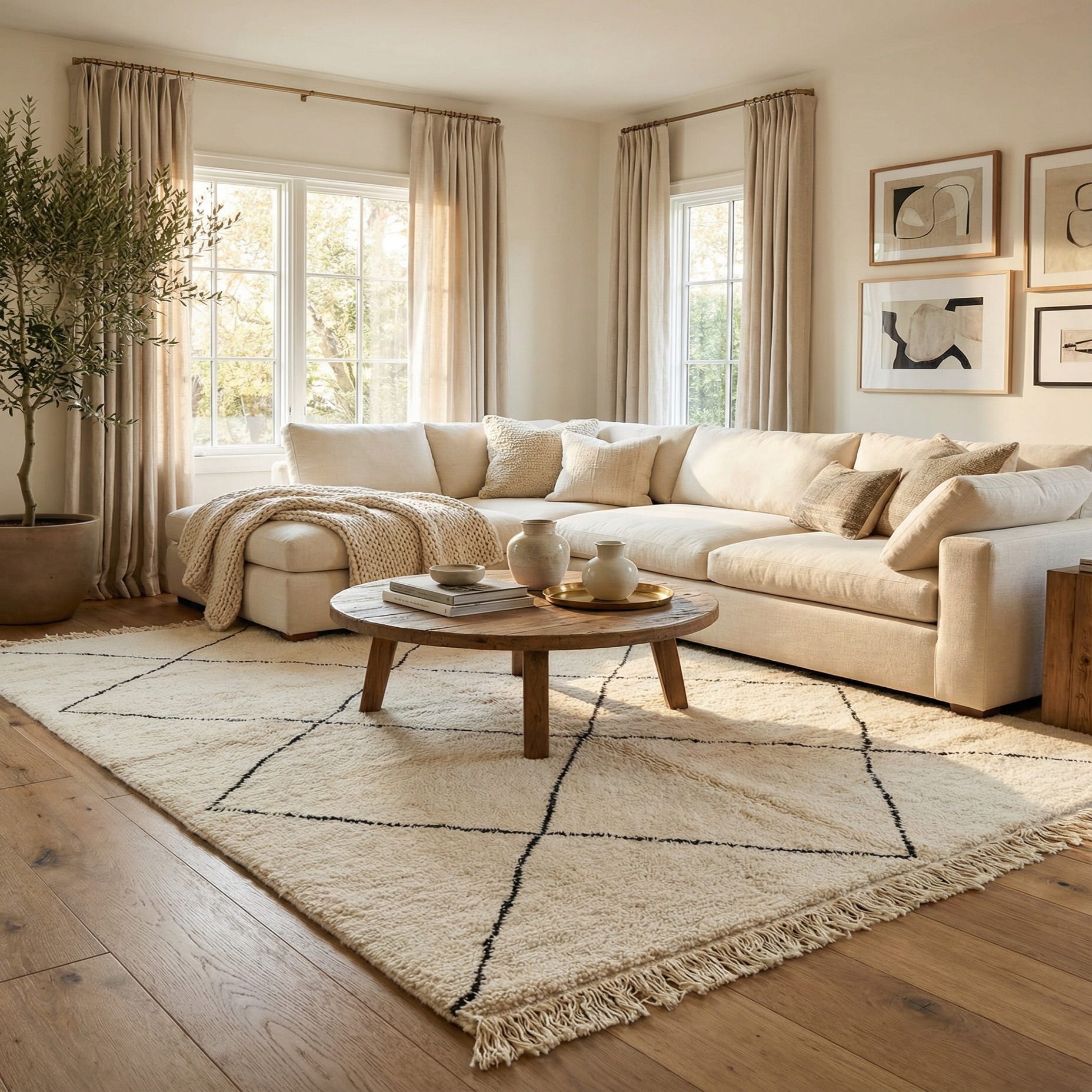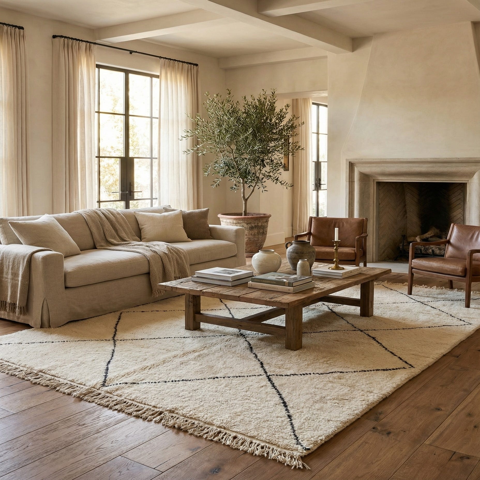 6' 7 x 8' 5 Hand Knotted Moroccan Wool Rug