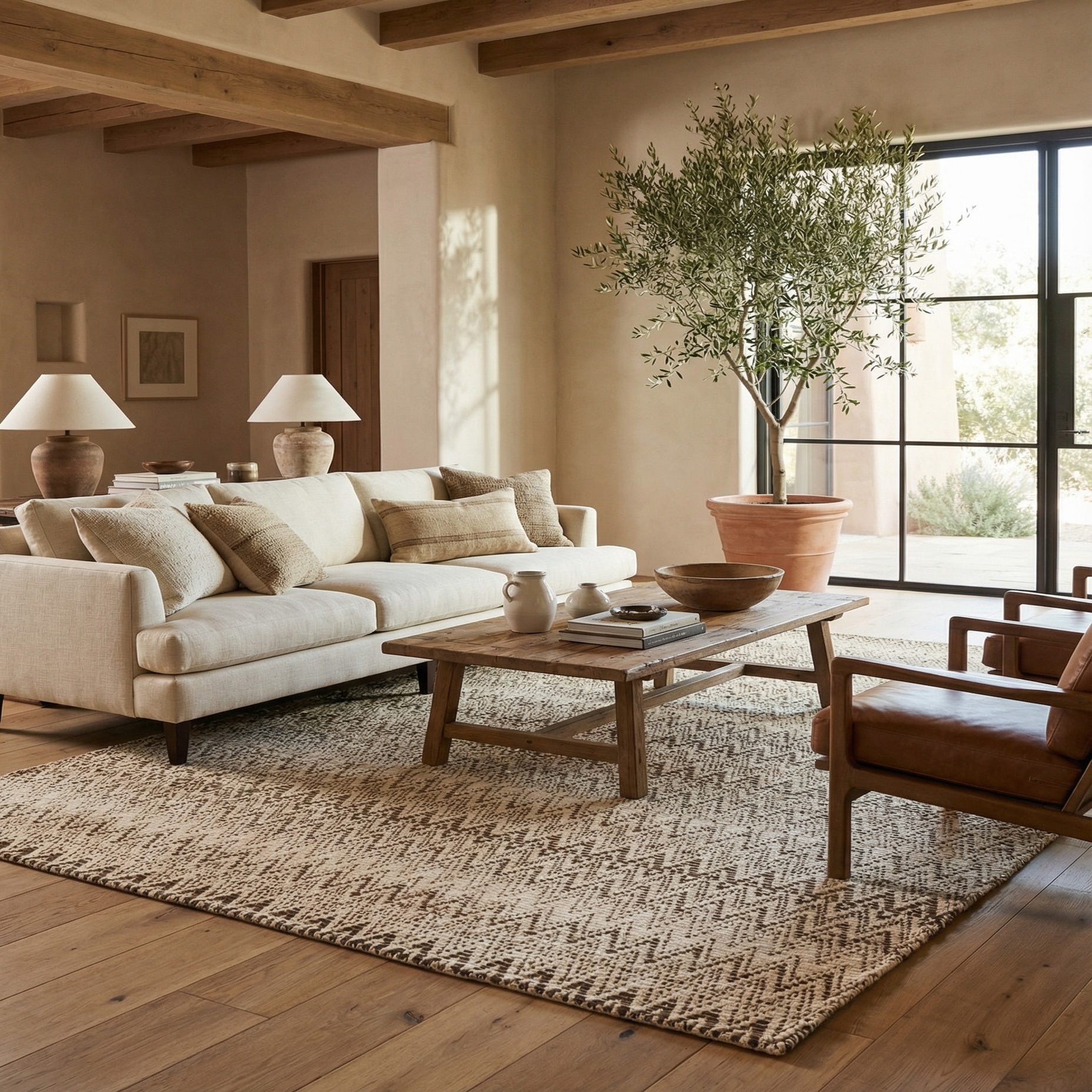 Primary color is Ivory. Colors in this rug include: Ivory, Brown.