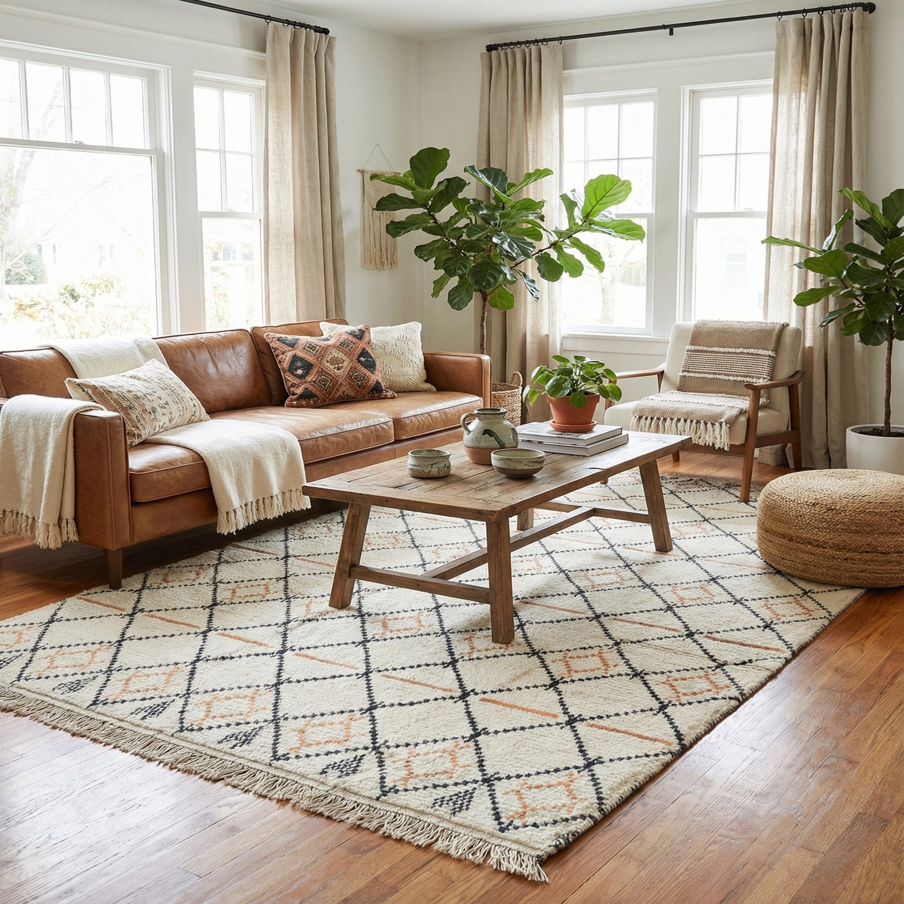 5' 10 x 9' 5 Hand Knotted Moroccan Wool Rug