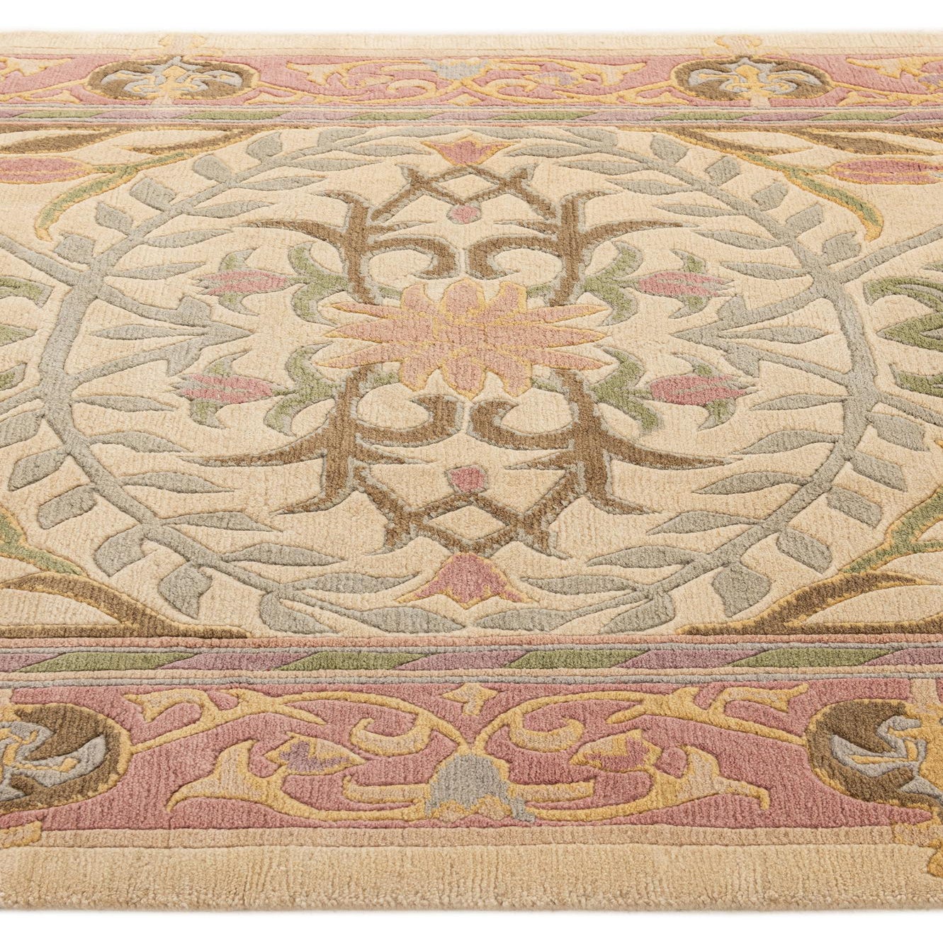 Primary color is Ivory. Colors in this rug include: Ivory, Beige, Brown, Light Blue, Pink, Light Green, Olive.