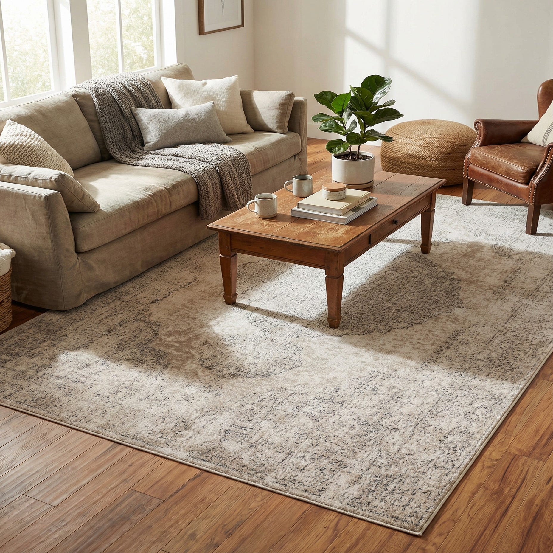 Primary color is Ivory. Colors in this rug include: Ivory, Beige, Gray.