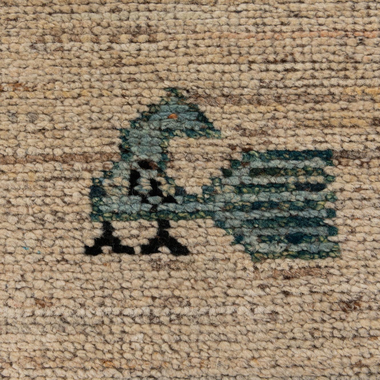 Primary color is Ivory. Colors in this rug include: Ivory, Beige, Black, Blue, Brown, Green, Light Blue, Violet, Olive, Orange.