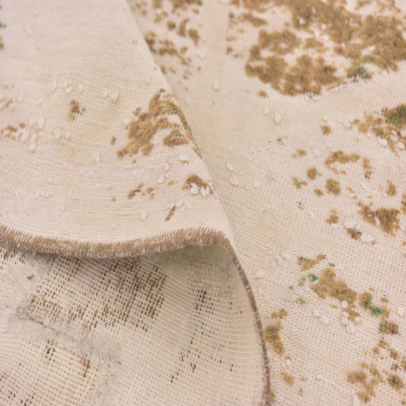 Primary color is Ivory. Colors in this rug include: Ivory, Light Brown, Green.