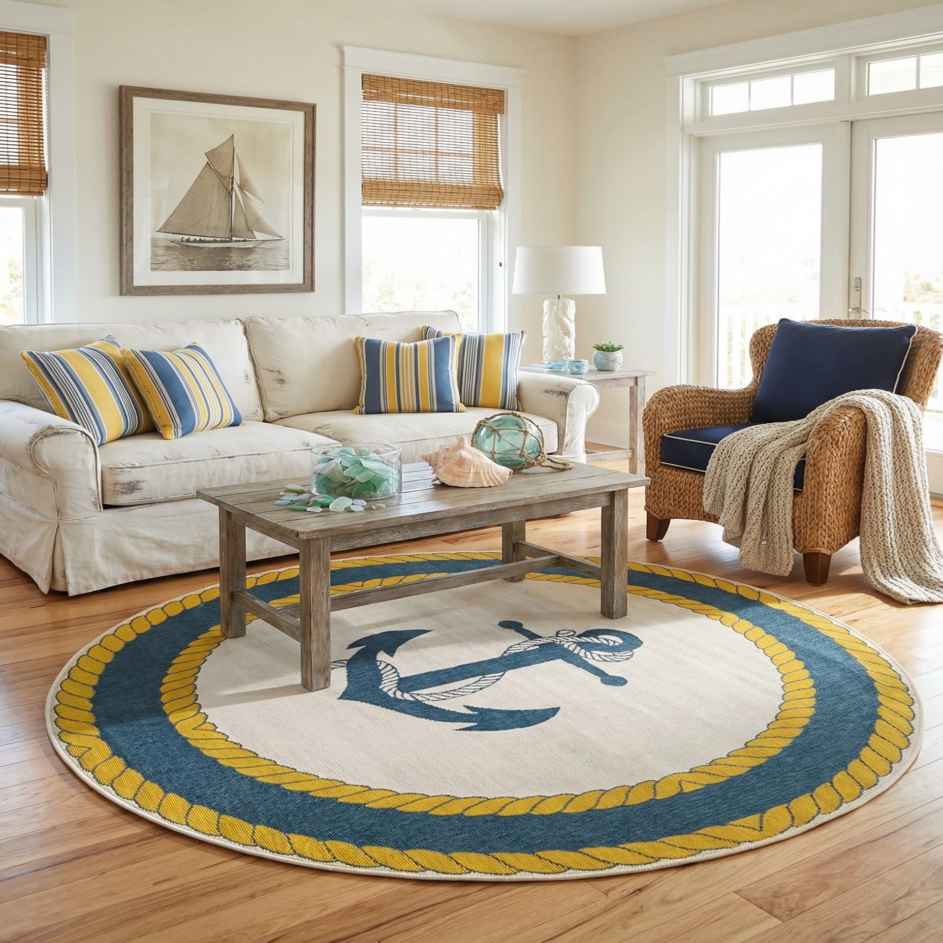 7' x 7' Washable Coastal Indoor / Outdoor Round Rug