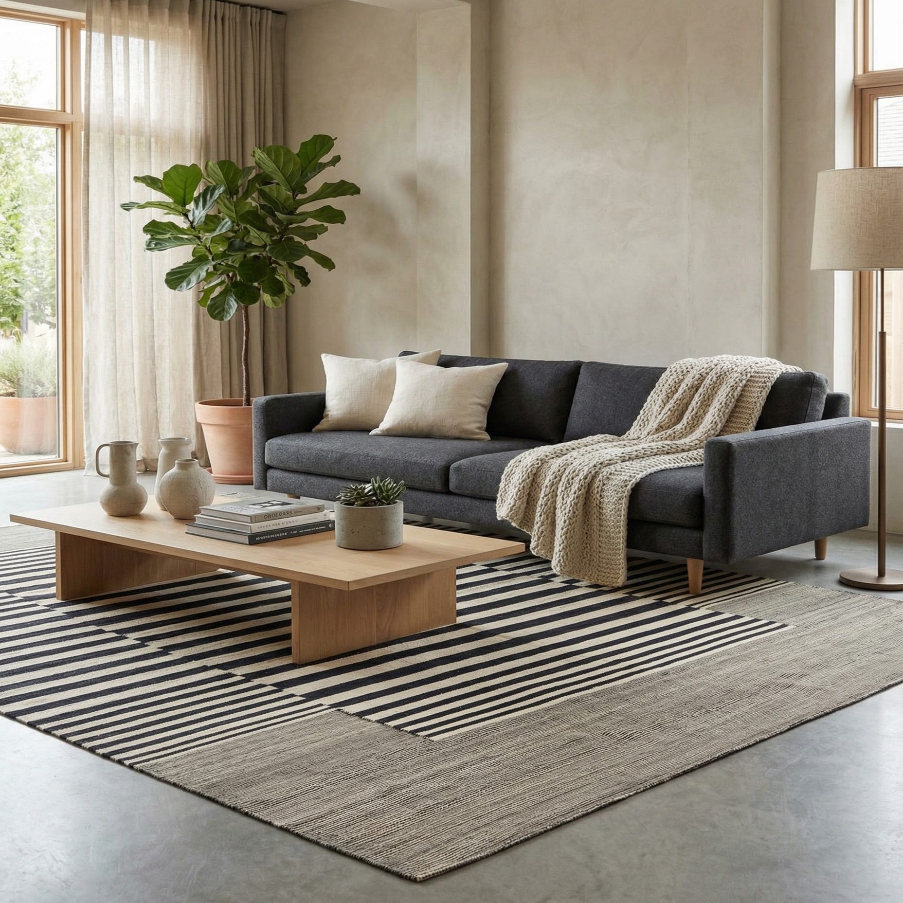 Primary color is Ivory. Colors in this rug include: Ivory, Black.