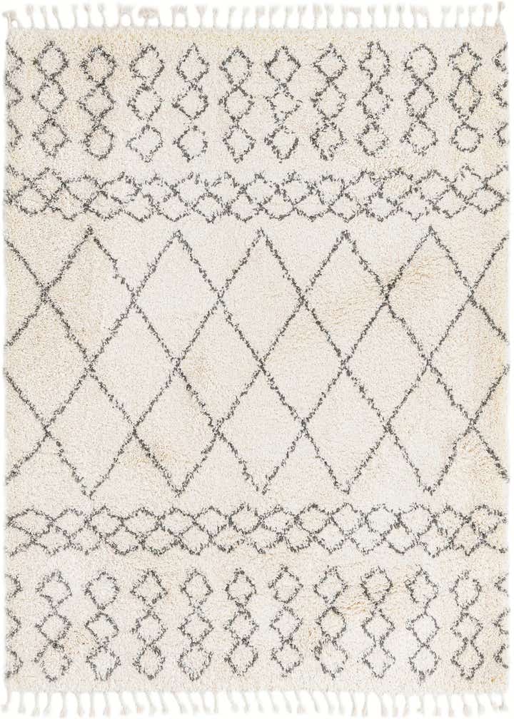 Primary color is Ivory. Colors in this rug include: Ivory, Gray.