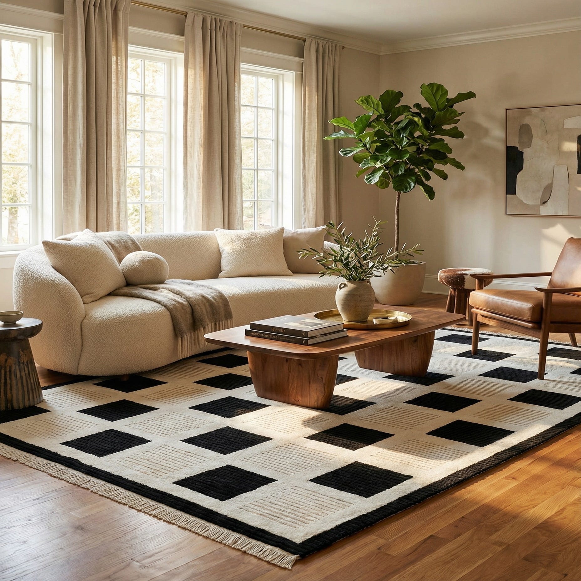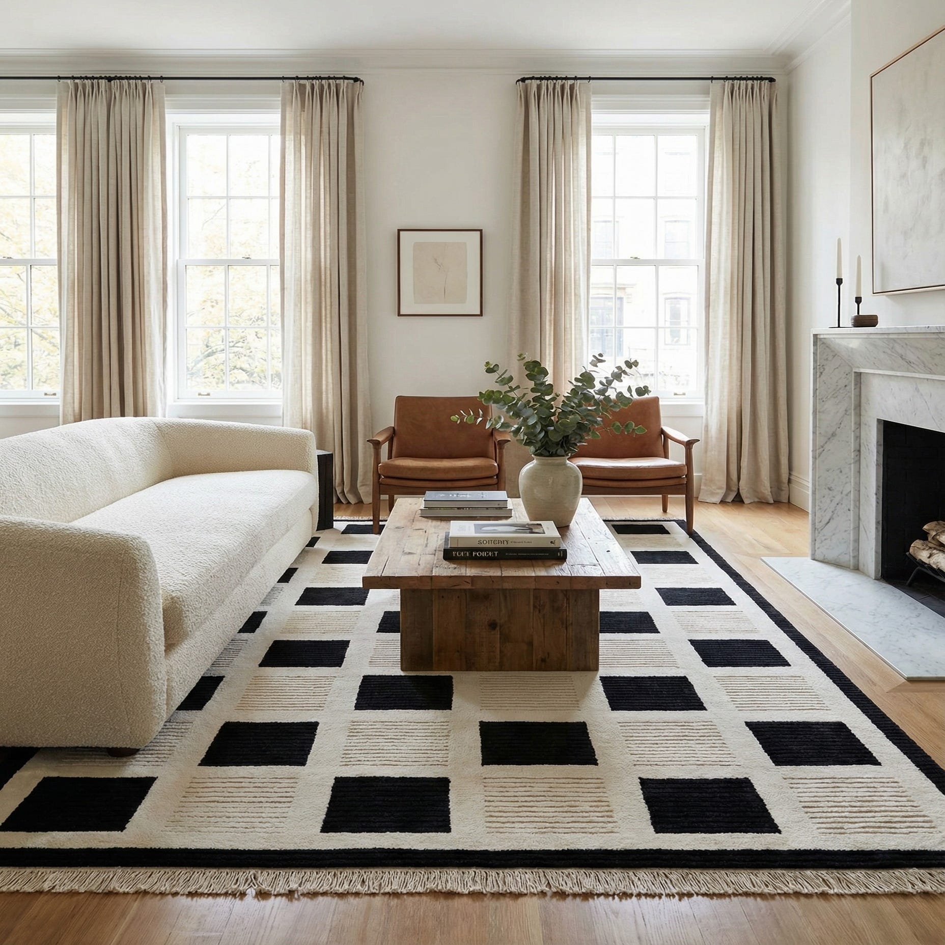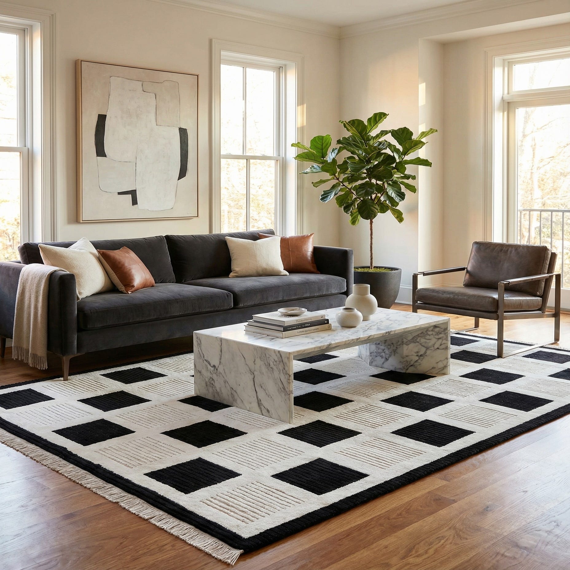 Primary color is Ivory. Colors in this rug include: Ivory, Black, Cream.