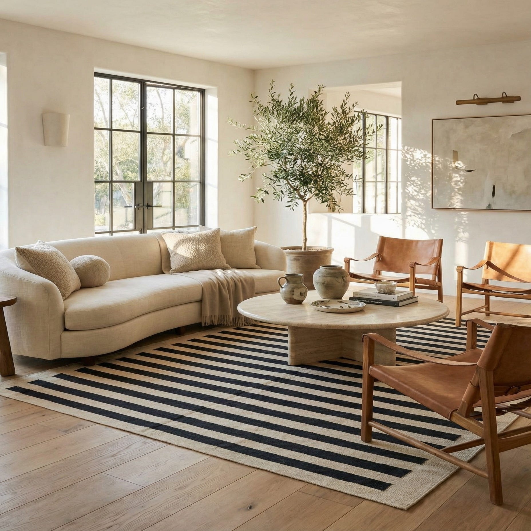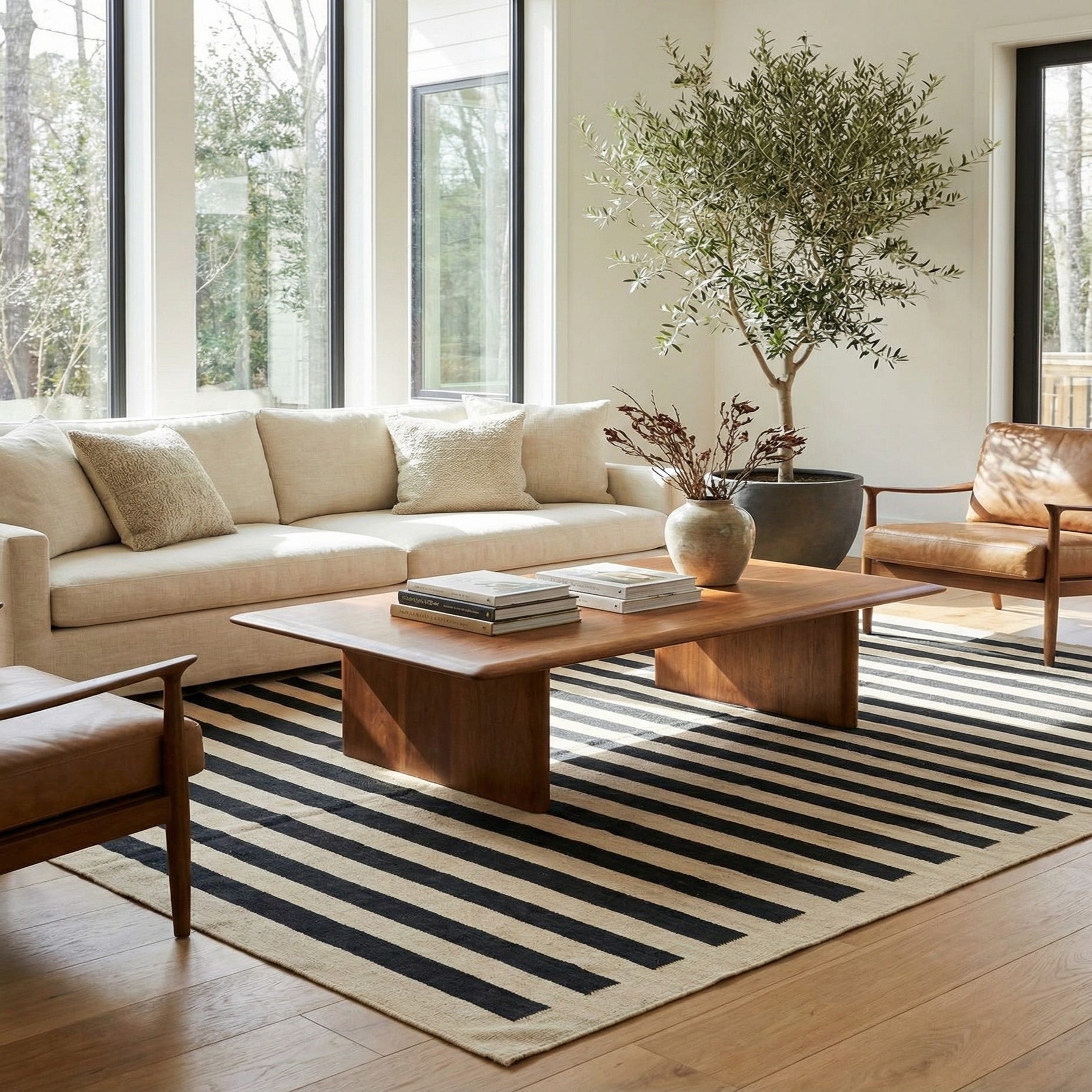 Primary color is Ivory. Colors in this rug include: Ivory, Black.