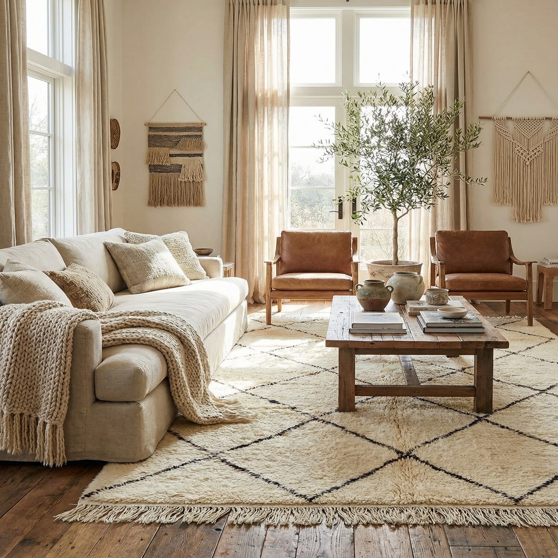 6' 9 x 9' 9 Hand Knotted Moroccan Wool Rug
