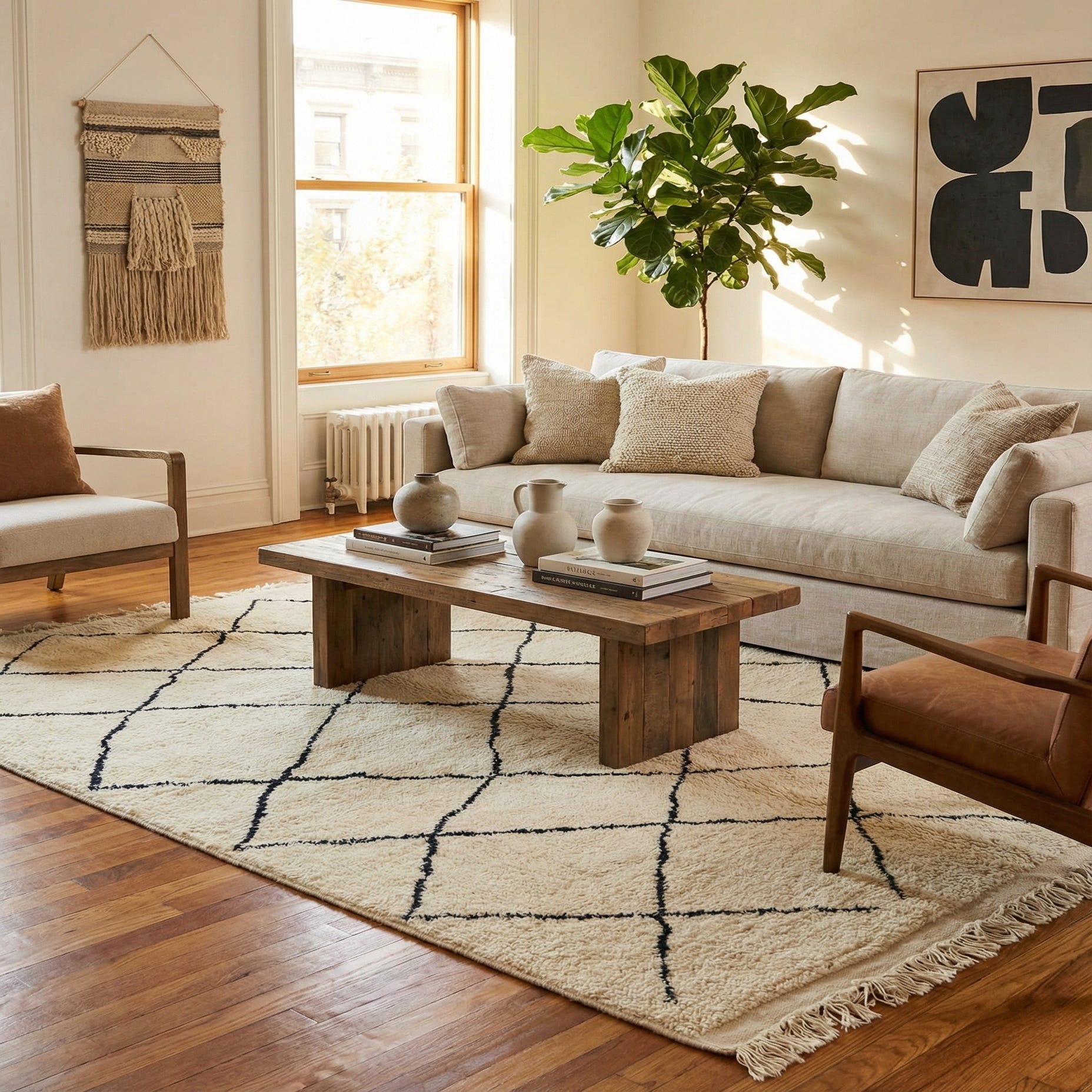 6' 9 x 10' Hand Knotted Moroccan Wool Rug