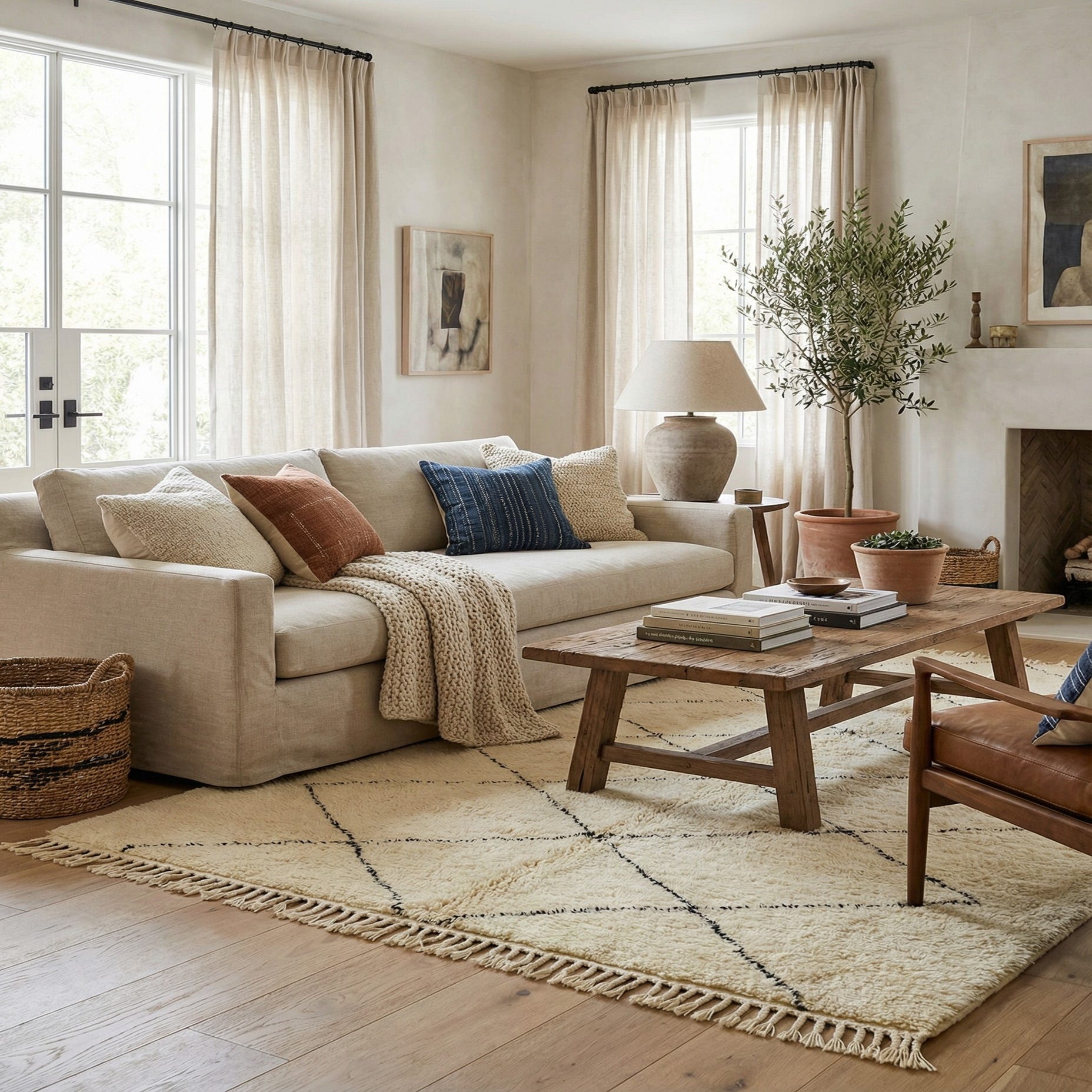 6' 9 x 10' Hand Knotted Moroccan Wool Rug