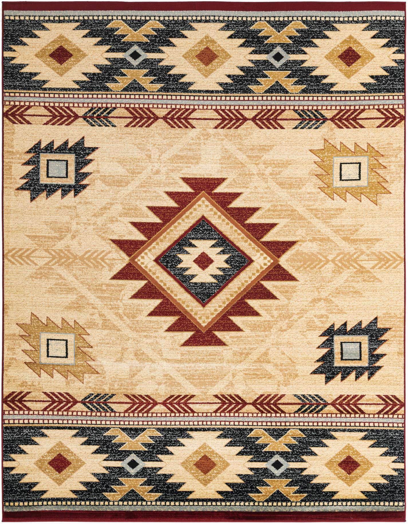 Primary color is Ivory. Colors in this rug include: Ivory, Beige, Black, Brown, Gray, Red.