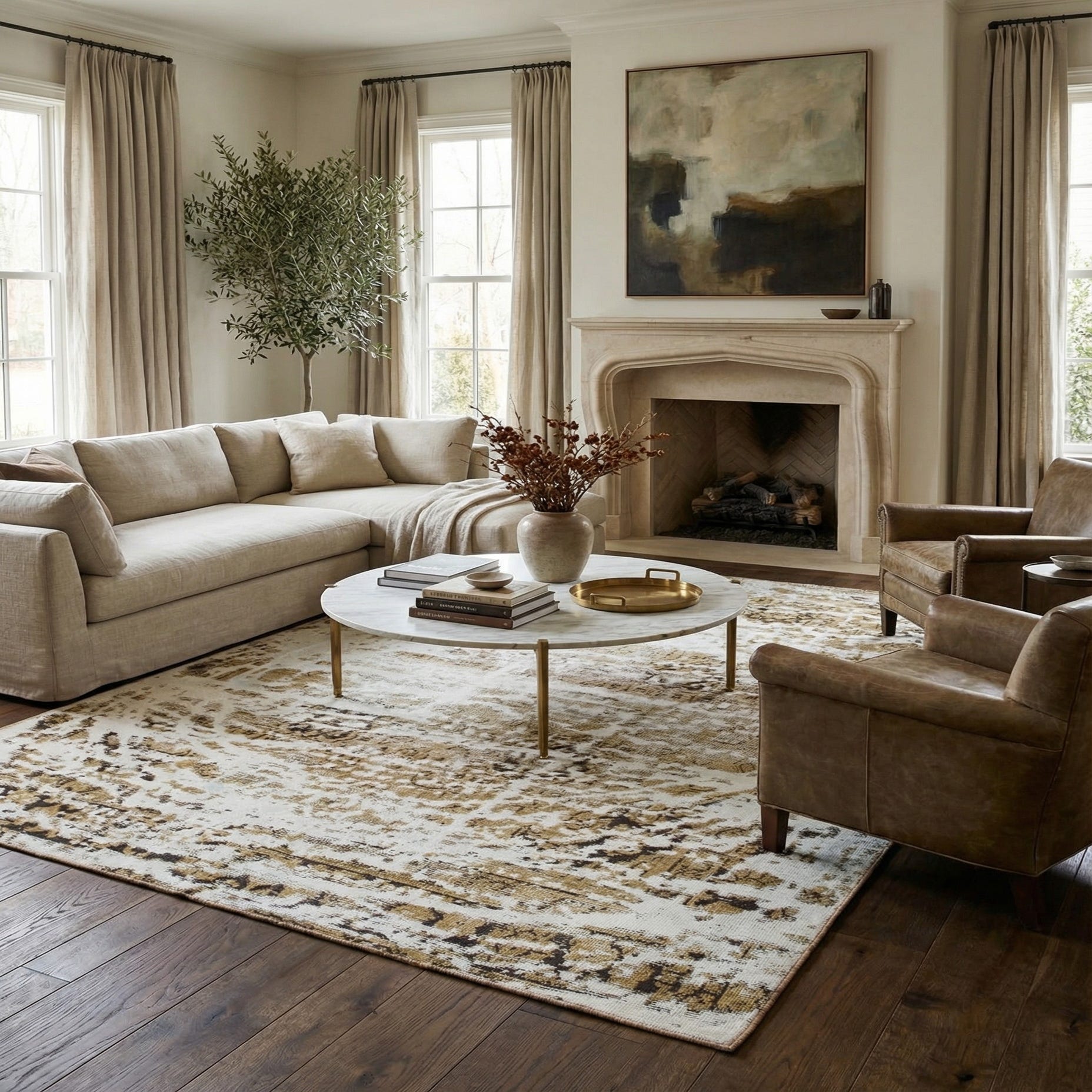 Primary color is Ivory. Colors in this rug include: Ivory, Brown, Light Brown.