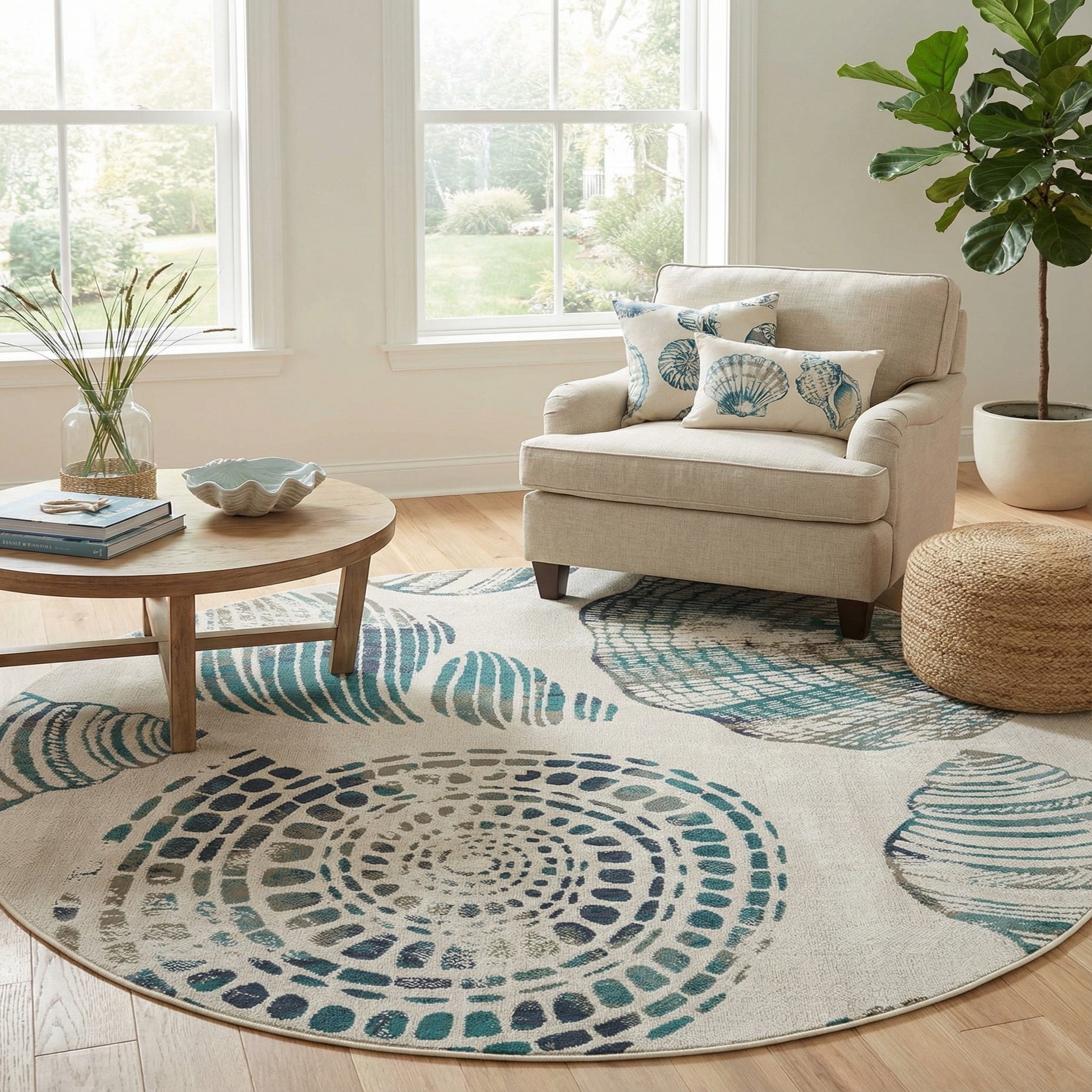 7' 10 x 7' 10 Washable Coastal Indoor / Outdoor Round Rug