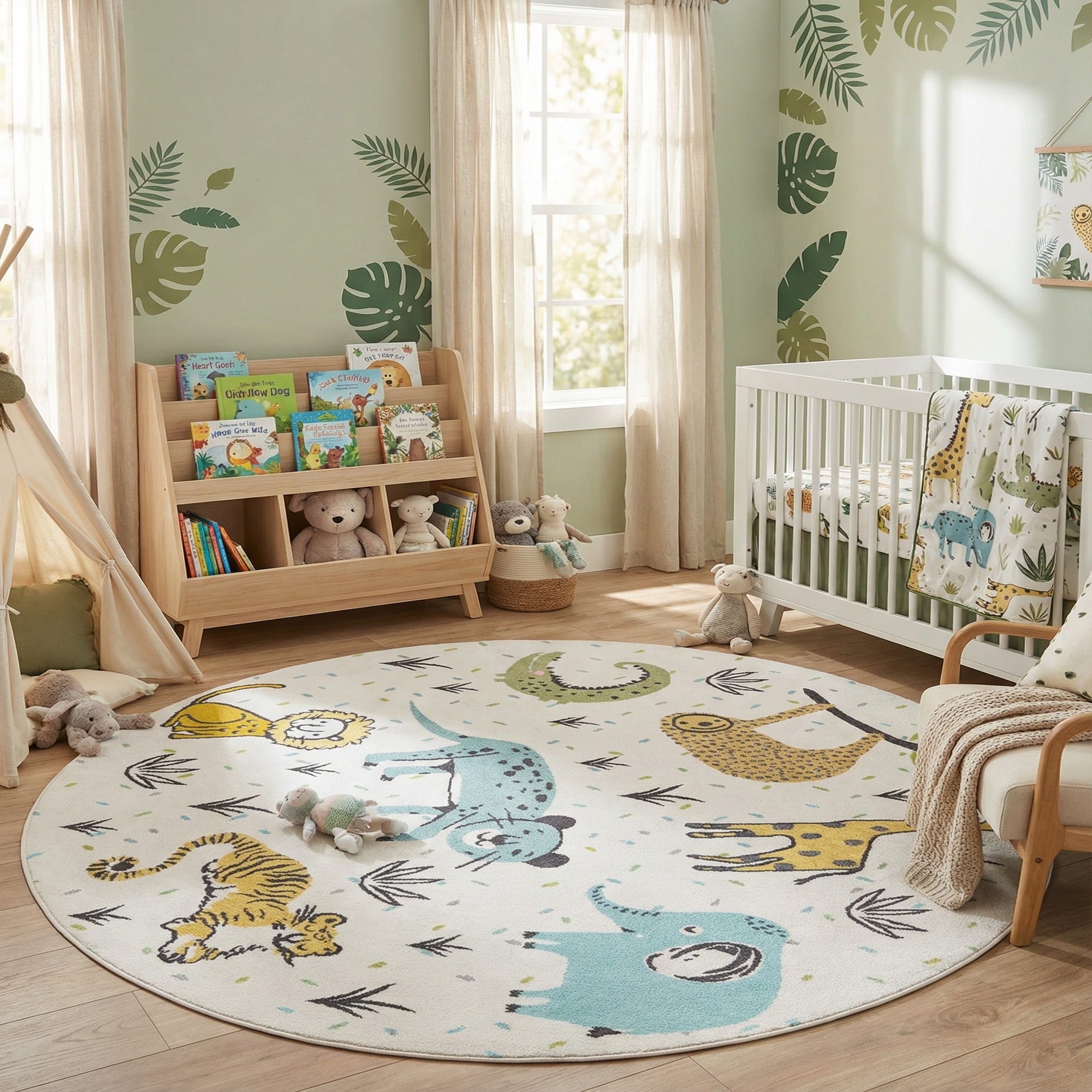 7' 10 x 7' 10 Animals Whimsy Kids Round Rug