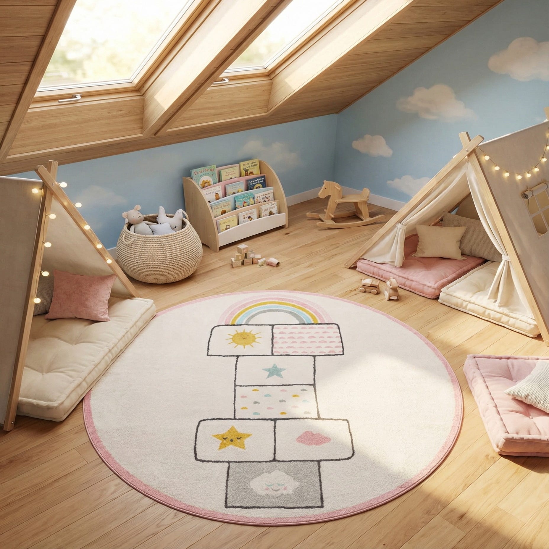 7' 10 x 7' 10 Hopscotch Whimsy Kids Round Rug