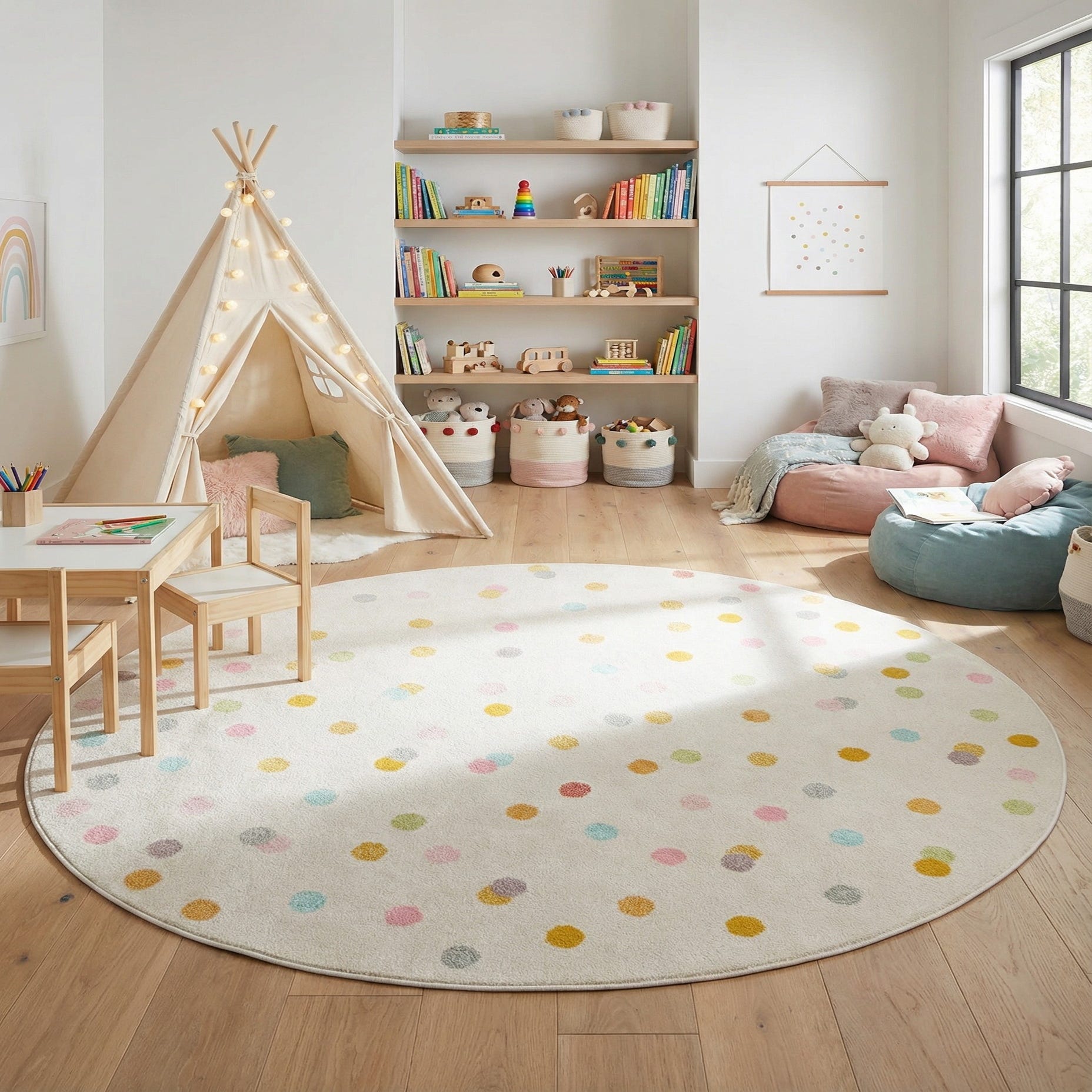7' 10 x 7' 10 Polka Dot Whimsy Kids Round Rug