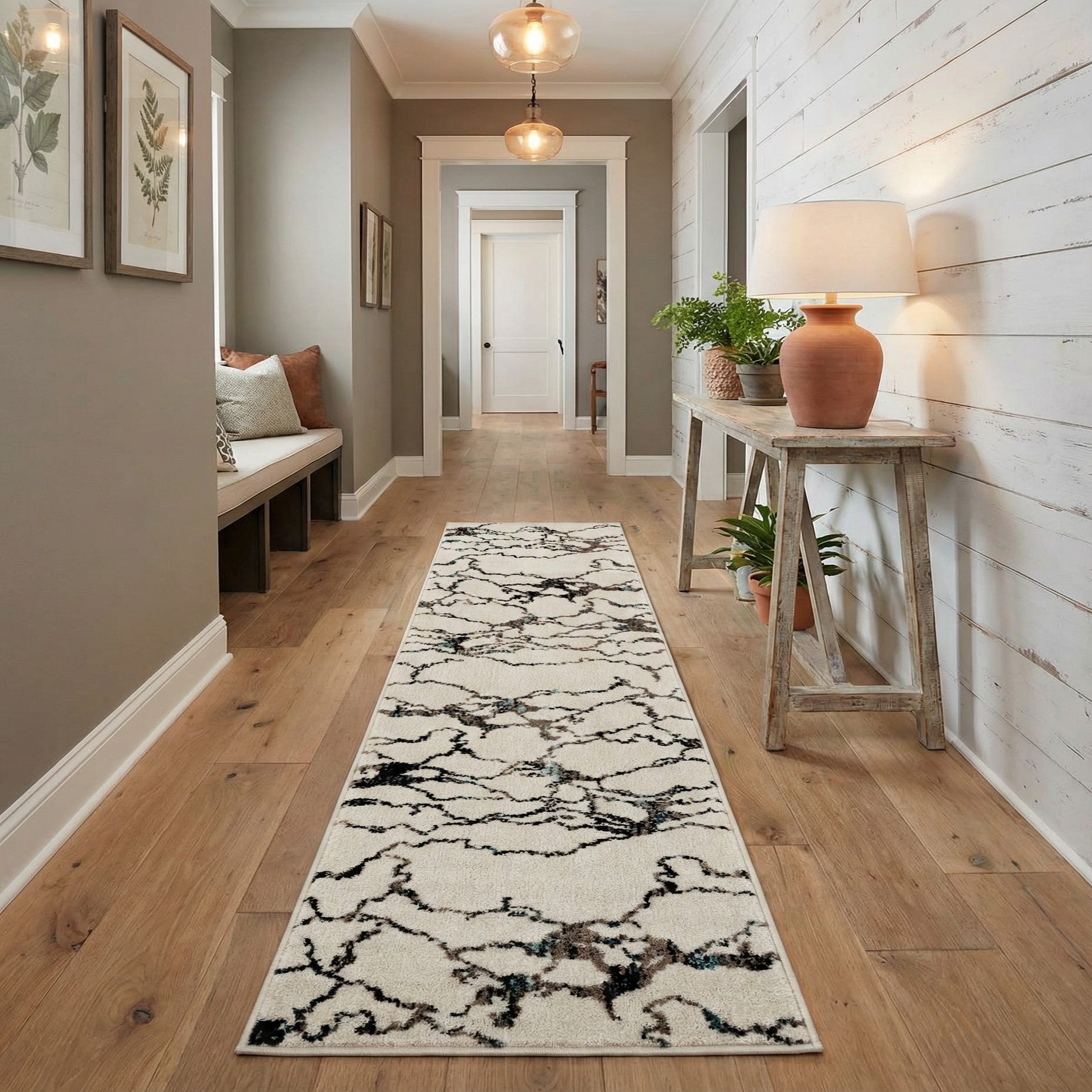 Primary color is Ivory. Colors in this rug include: Ivory, Beige, Black, Gray, Light Green.