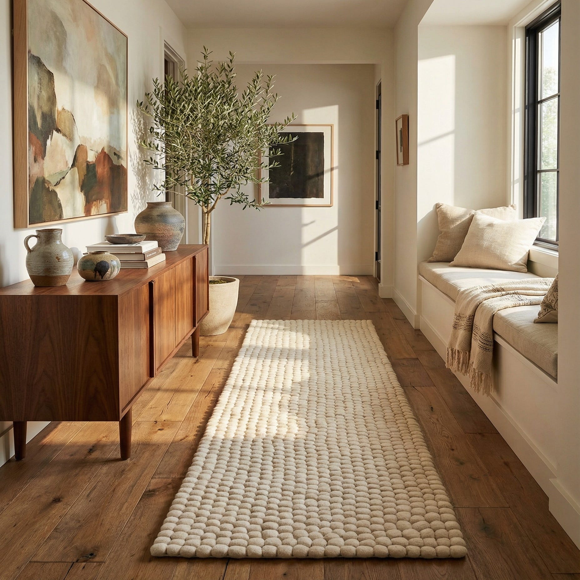 2' x 8' Hand Woven Felt Ball Wool Runner Rug