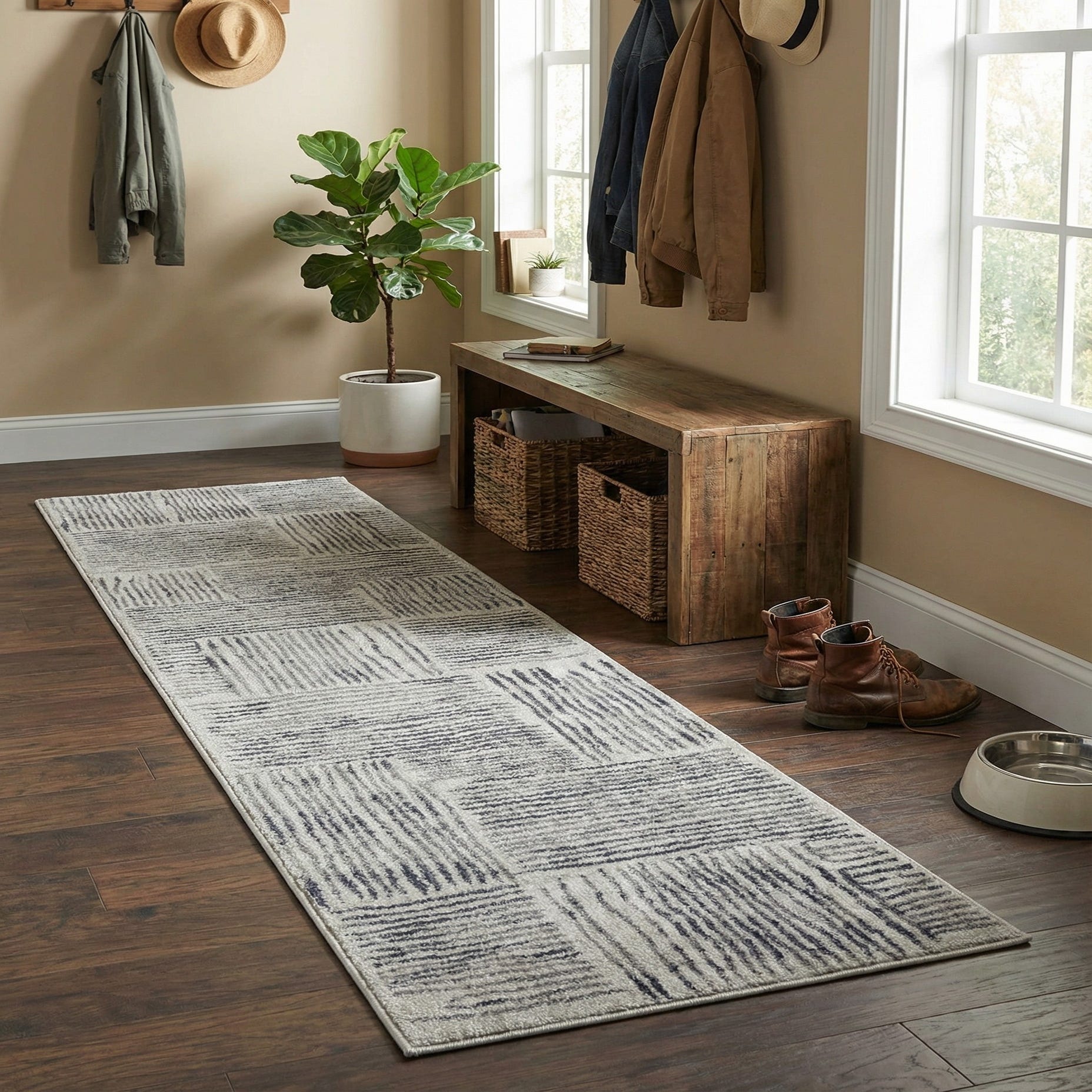 Primary color is Ivory. Colors in this rug include: Ivory, Gray.