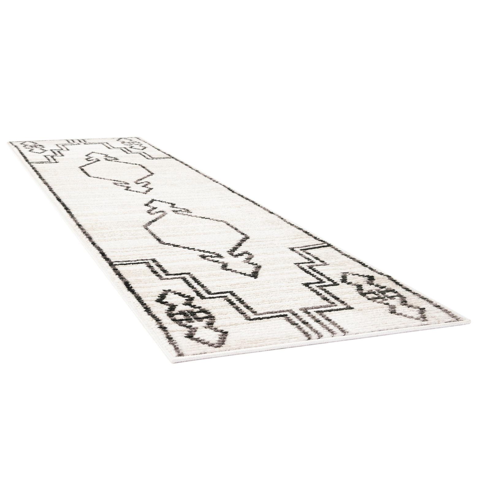 Primary color is Ivory. Colors in this rug include: Ivory, Black, Gray.
