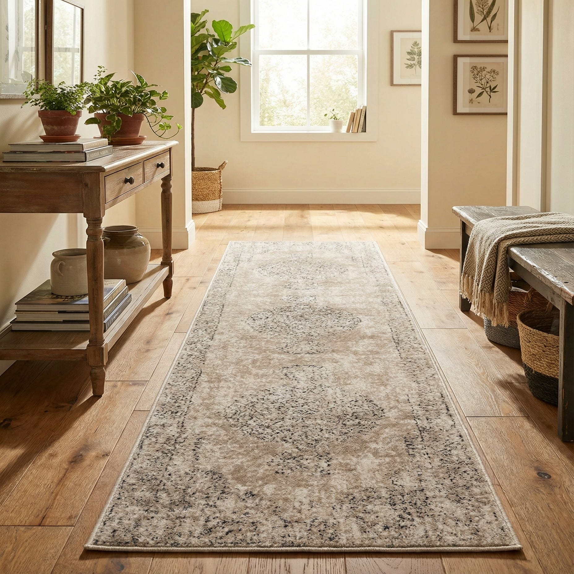 Primary color is Ivory. Colors in this rug include: Ivory, Beige, Gray.