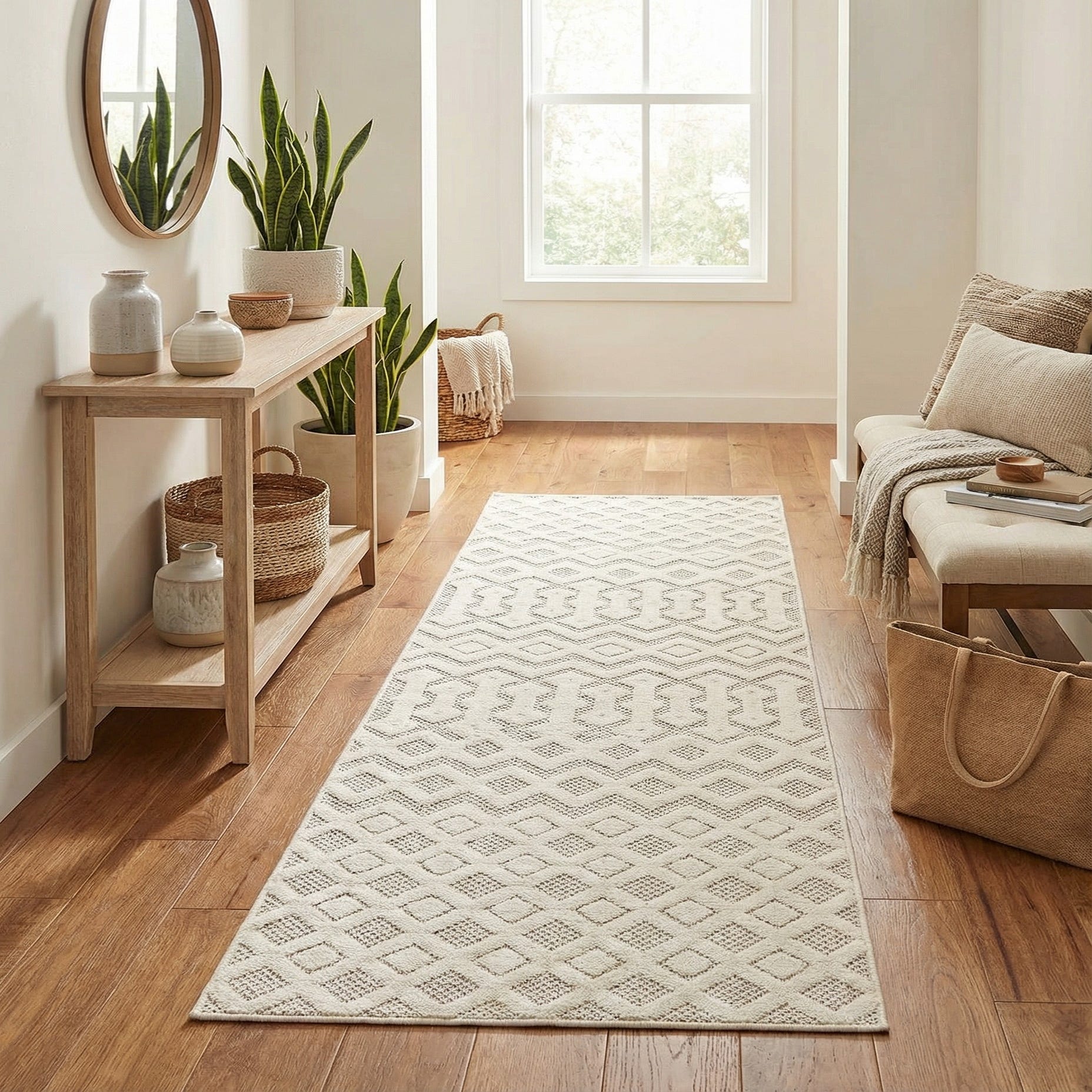 2' x 8' Washable Trellis Textured Indoor / Outdoor Runner Rug
