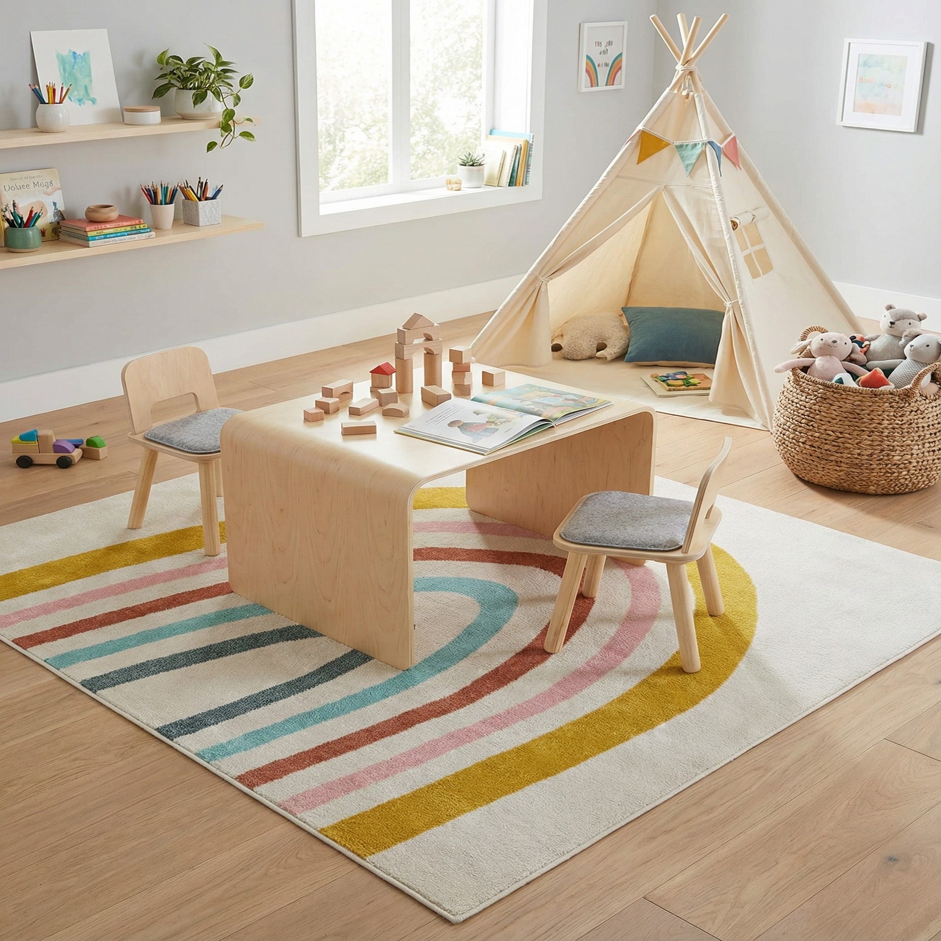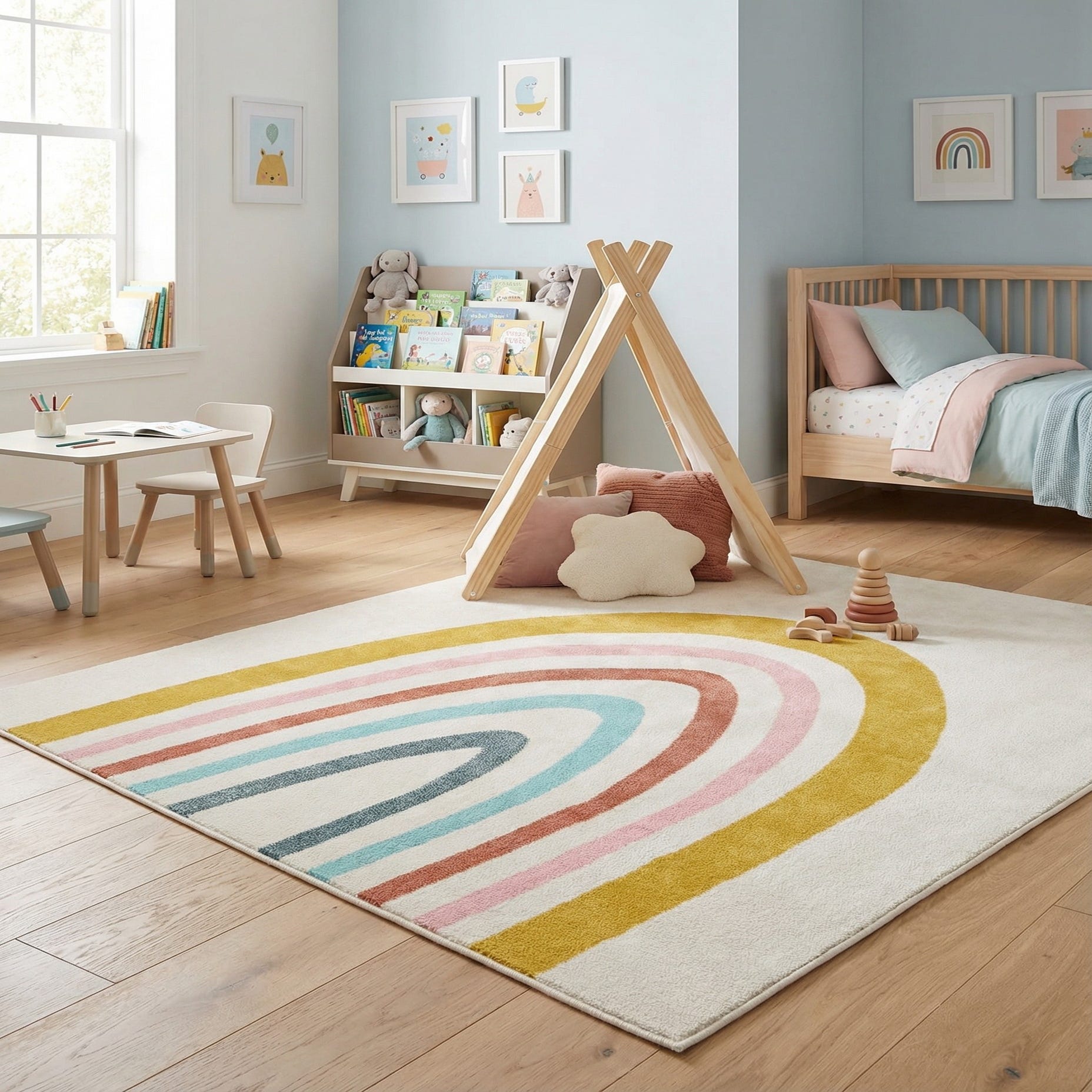 7' 10 x 7' 10 Rainbow Whimsy Kids Square Rug