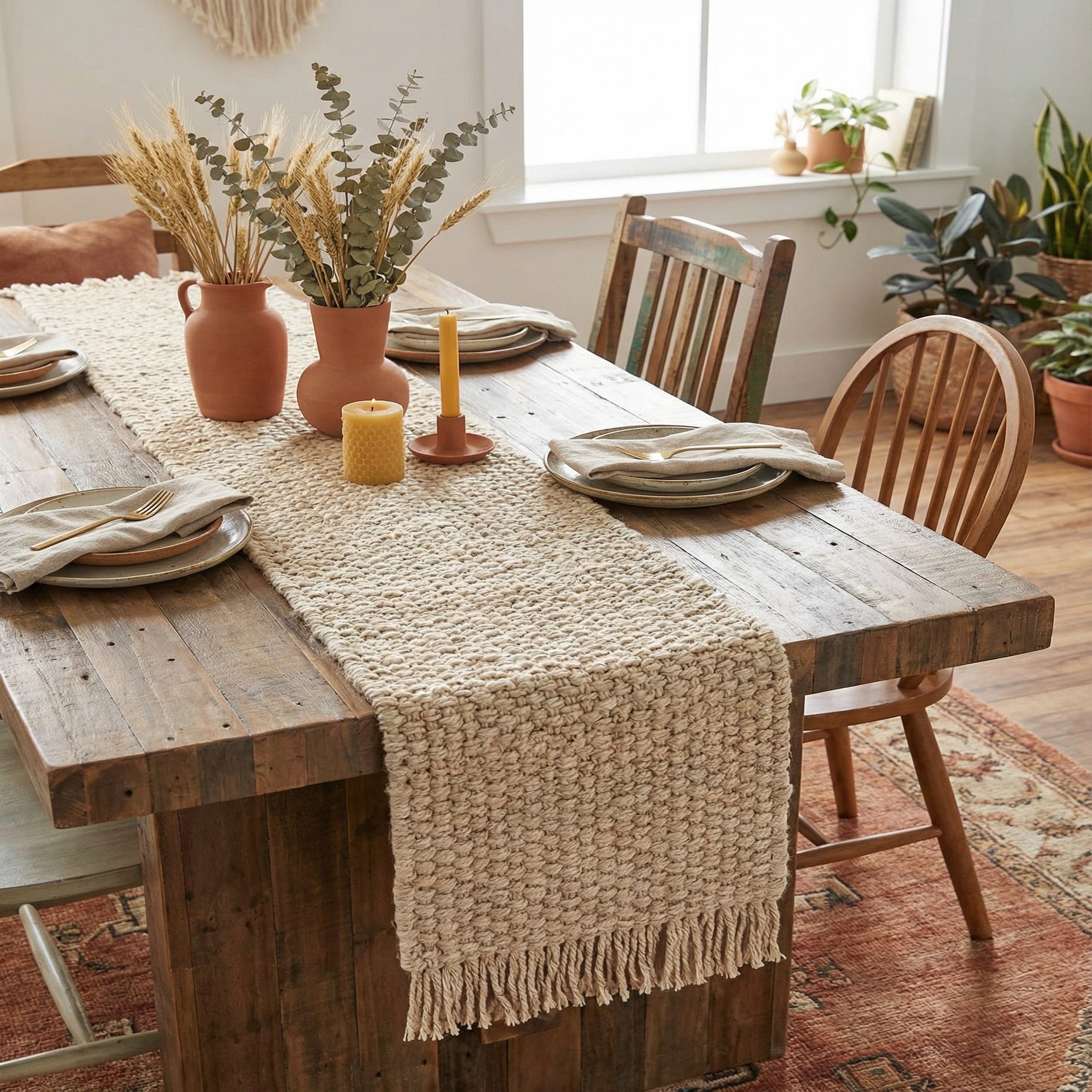 1' 2 x 8' Hand Woven Chunky Jute Table Runner Rug