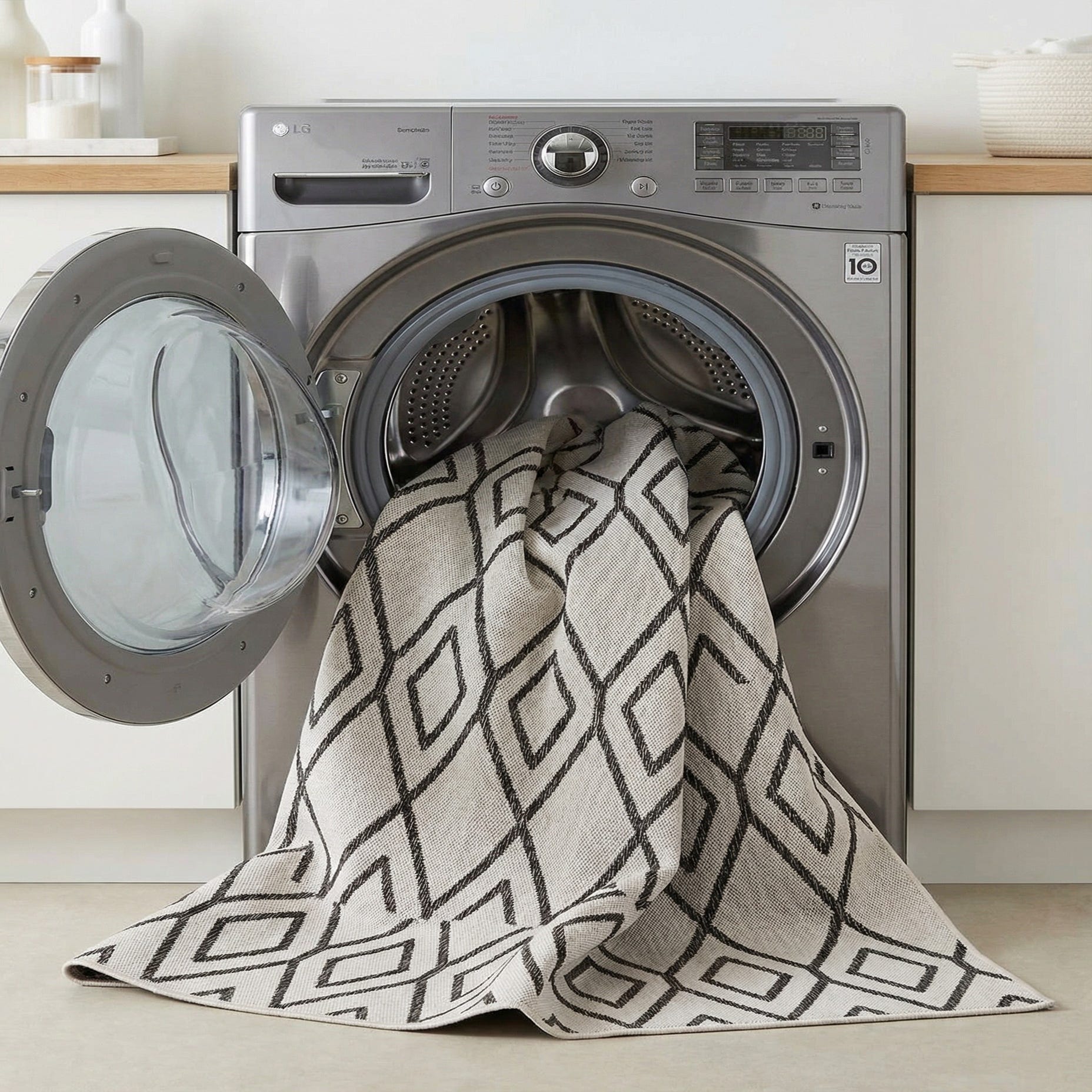 Primary color is Ivory. Colors in this rug include: Ivory, Black.