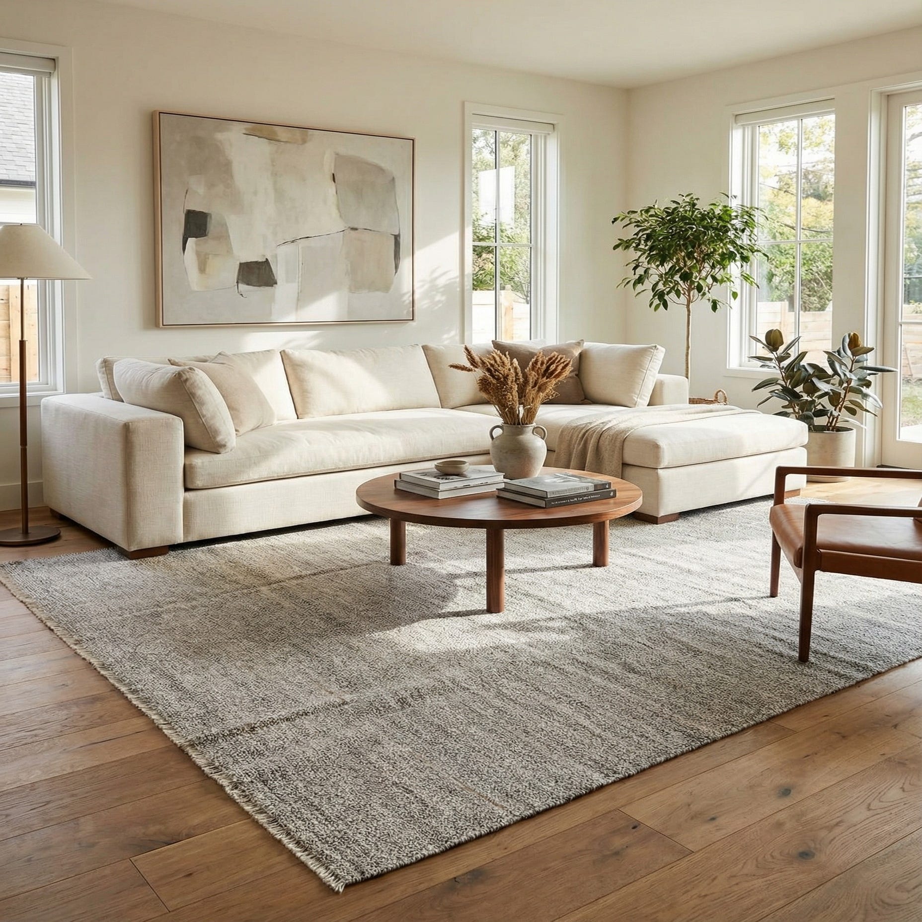 Primary color is Ivory. Colors in this rug include: Ivory, Gray.