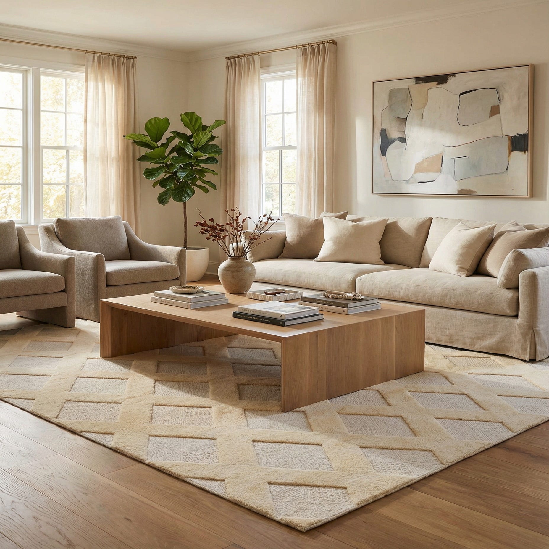 Detail image of 8' x 10'  Hand Woven Lattice Wool Rug