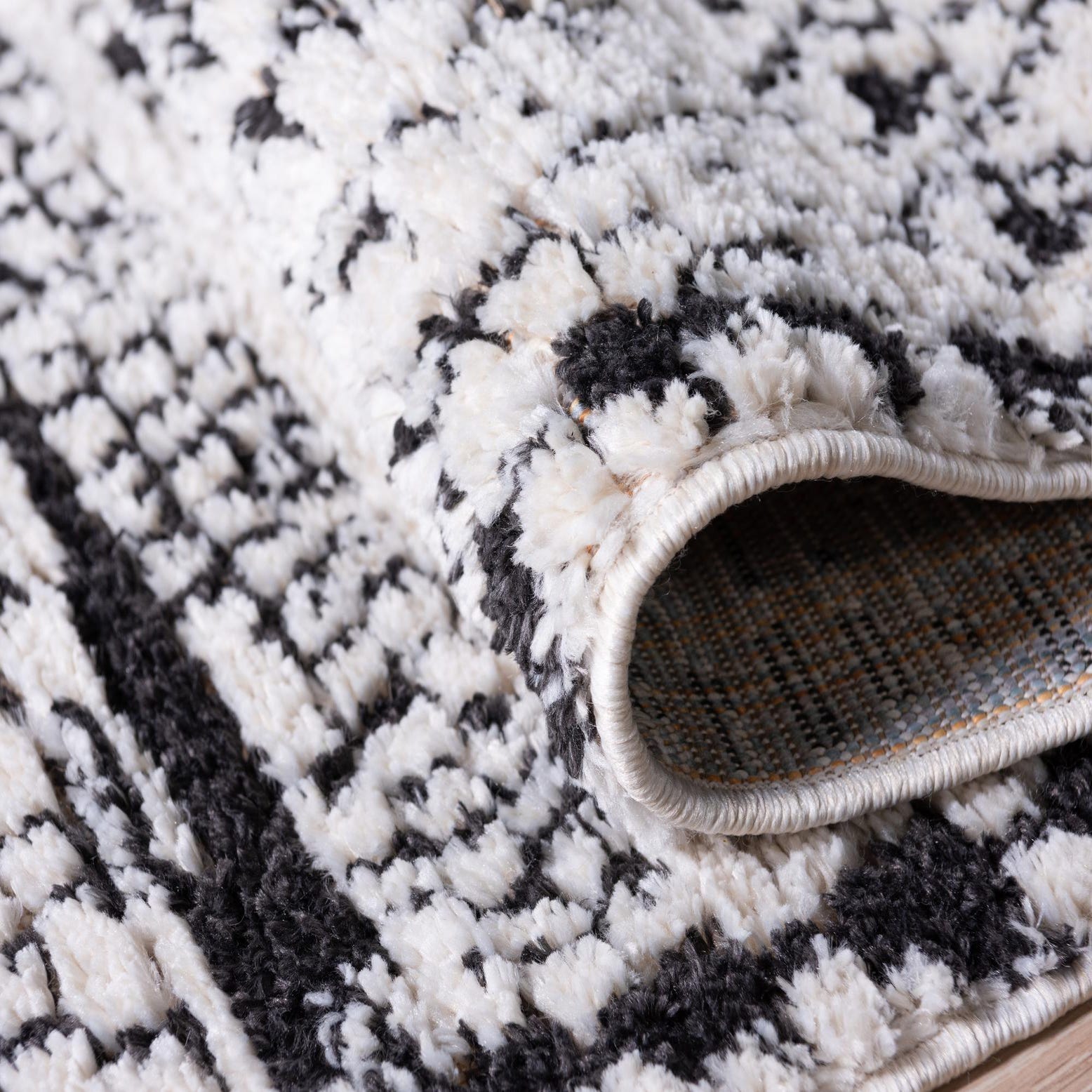 Primary color is Ivory. Colors in this rug include: Ivory, Black.