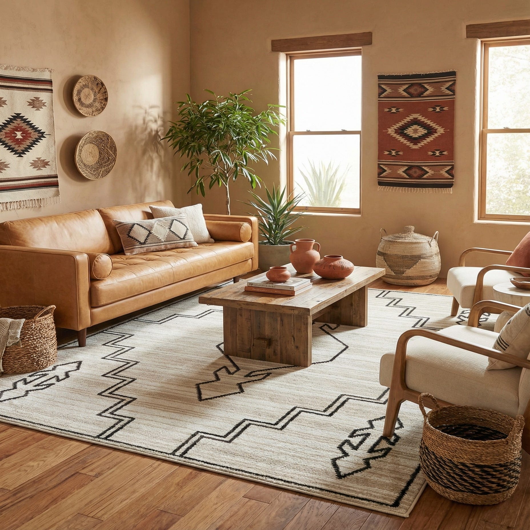 Primary color is Ivory. Colors in this rug include: Ivory, Black.