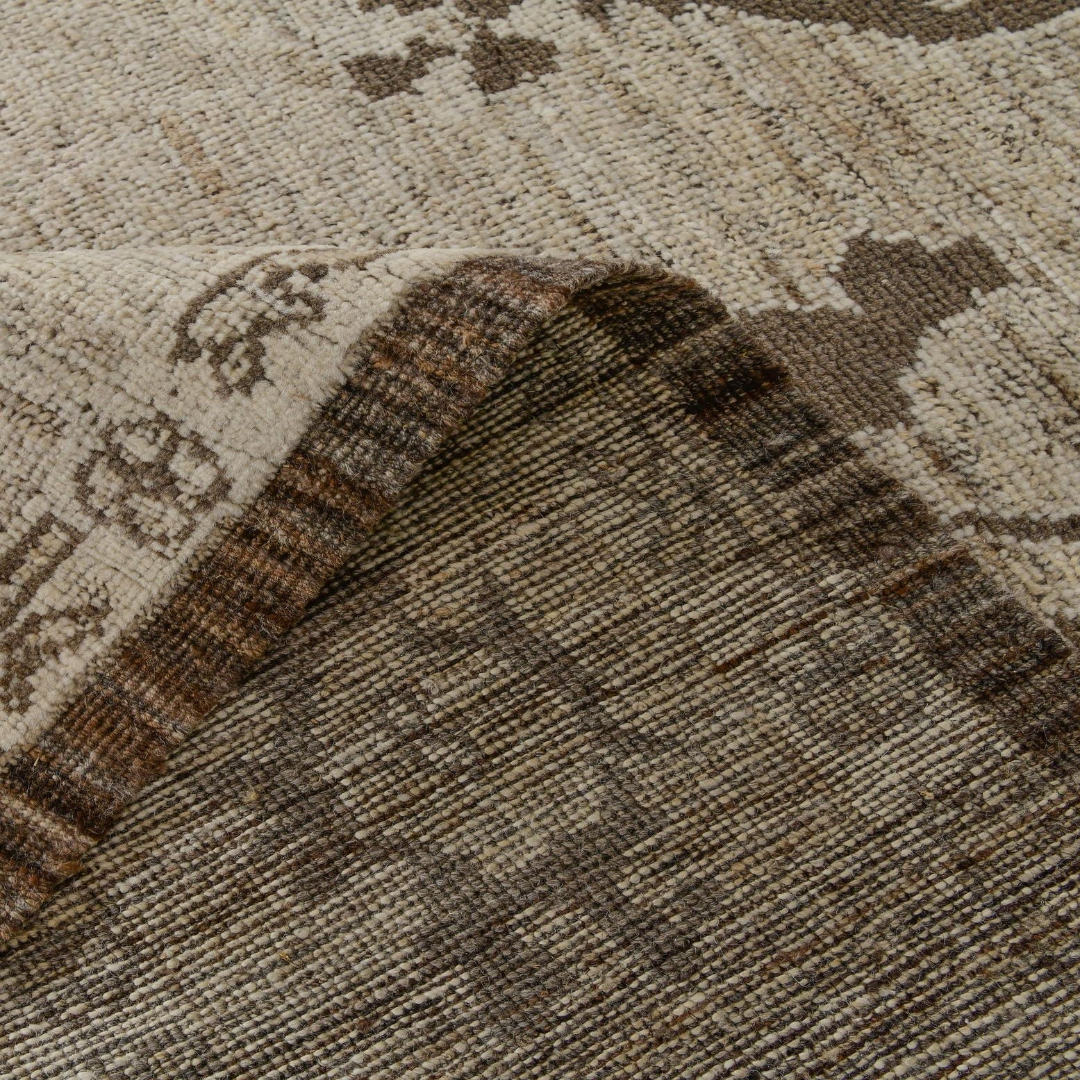 Primary color is Ivory. Colors in this rug include: Ivory, Brown.