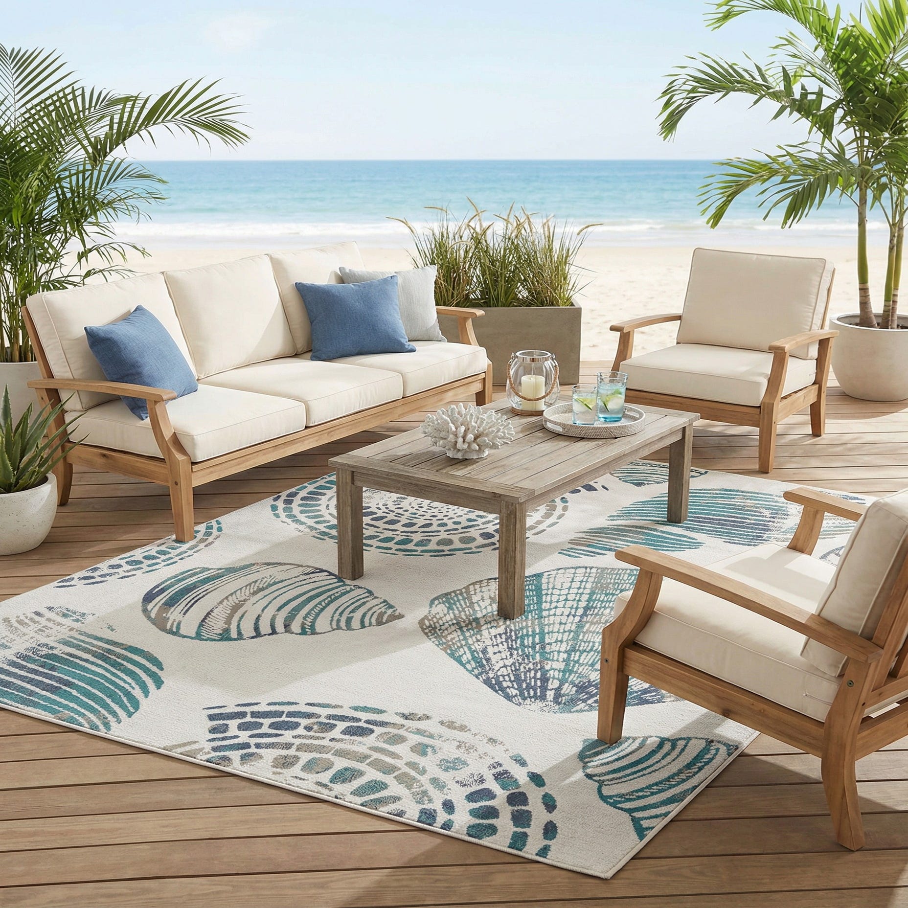 7' 10 x 10' Washable Coastal Indoor / Outdoor Rug