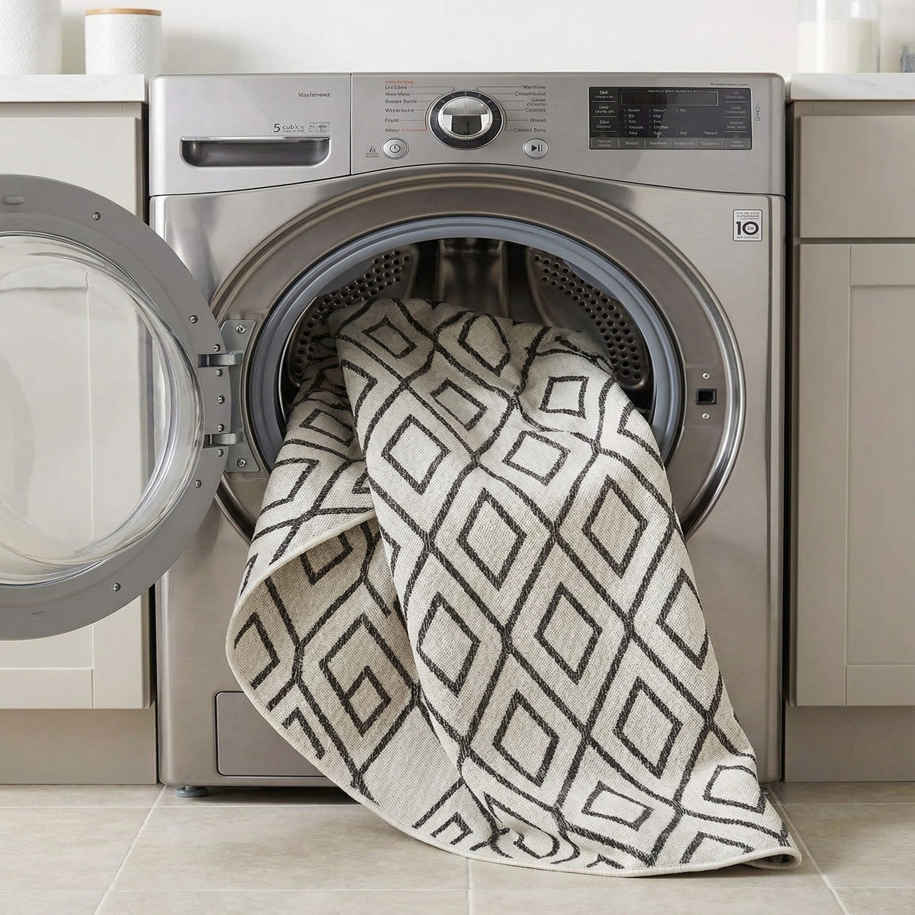 Primary color is Ivory. Colors in this rug include: Ivory, Black.
