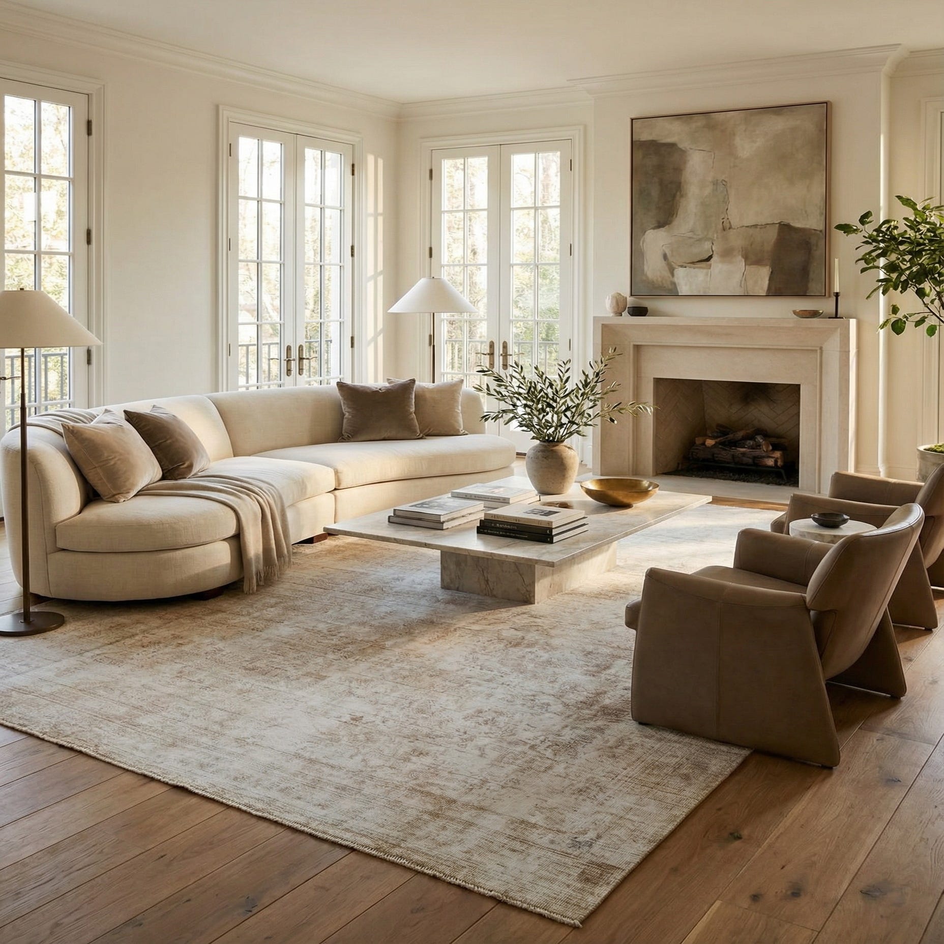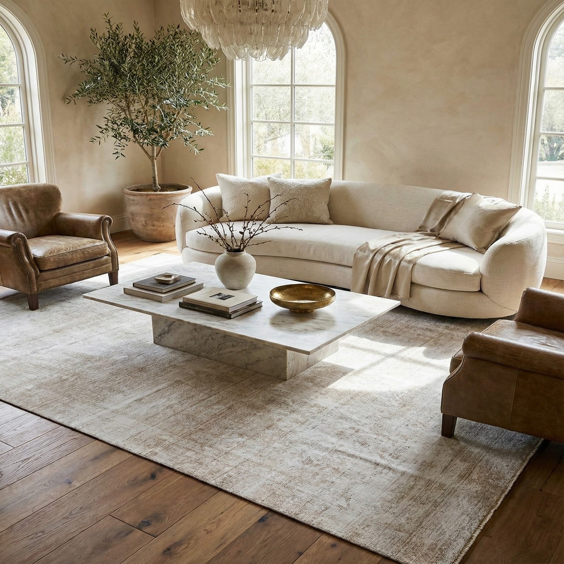 Primary color is Ivory. Colors in this rug include: Ivory, Light Brown.