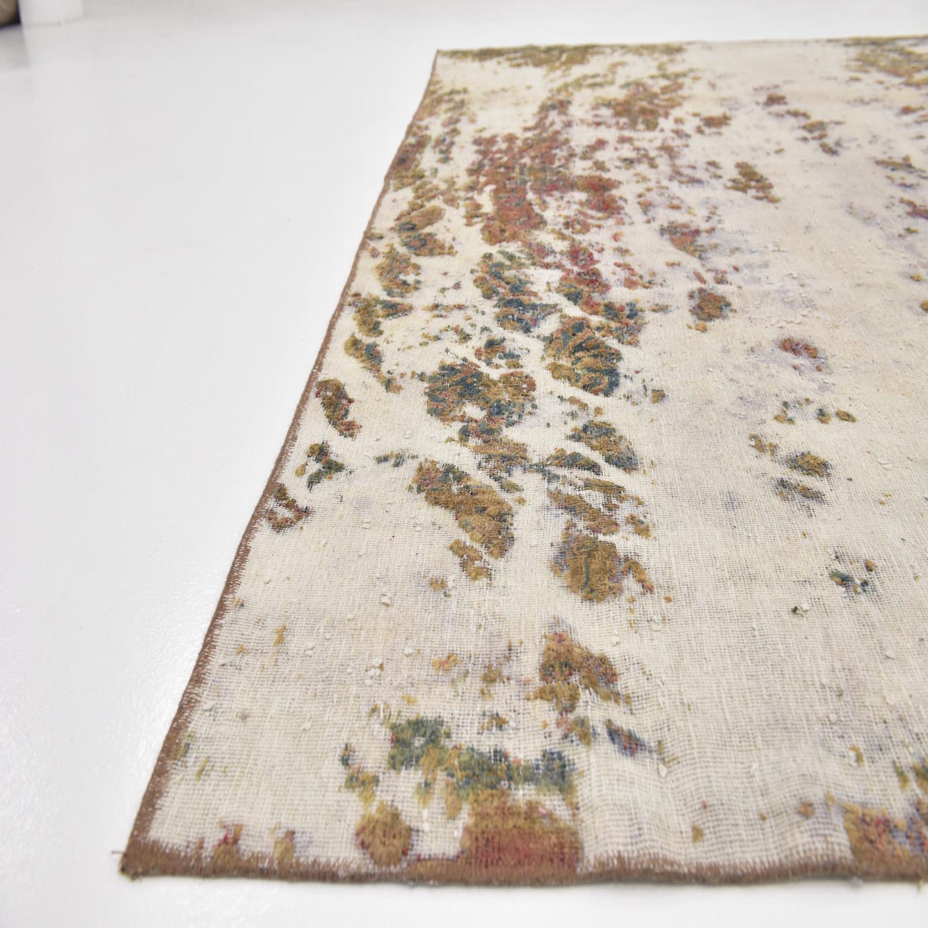 This Persian Ultra Vintage rug is an antique Persian Rug that has been washed, over-dyed, and then shaved down to a low pile. Look at the detail pictures to fully appreciate the uniqueness of this piece.
