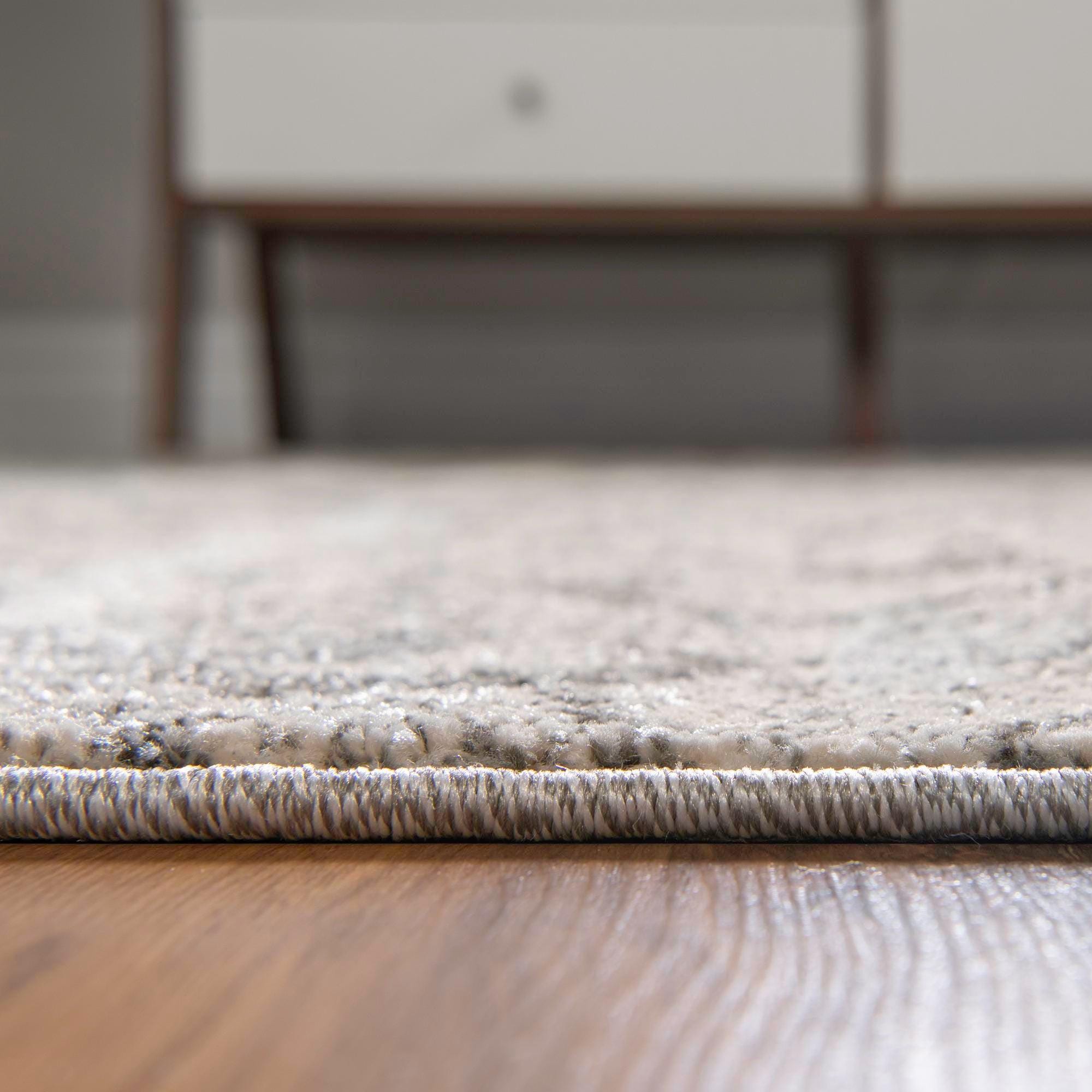 Primary color is Ivory. Colors in this rug include: Ivory, Gray, Silver.