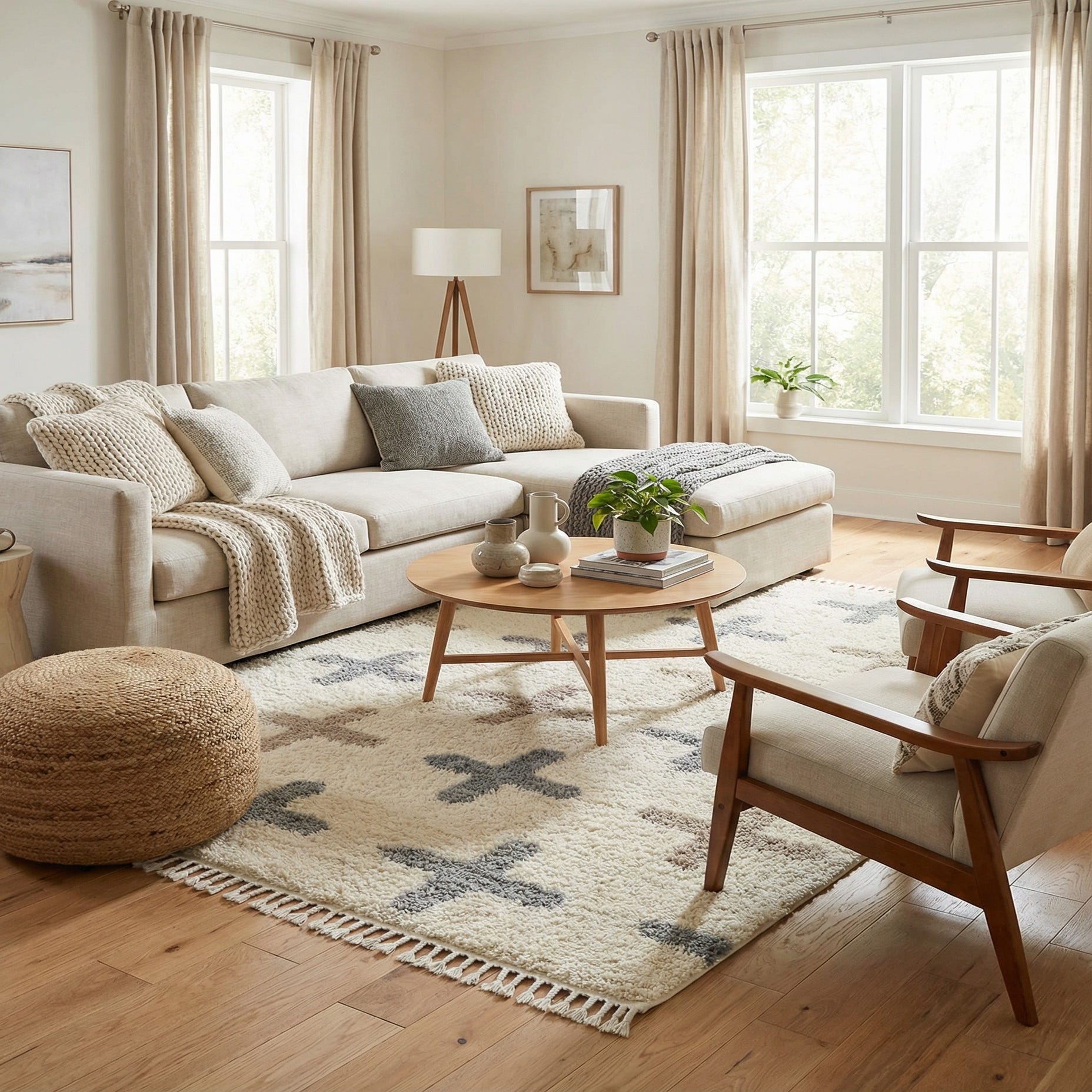 Primary color is Ivory. Colors in this rug include: Ivory, Beige, Gray.