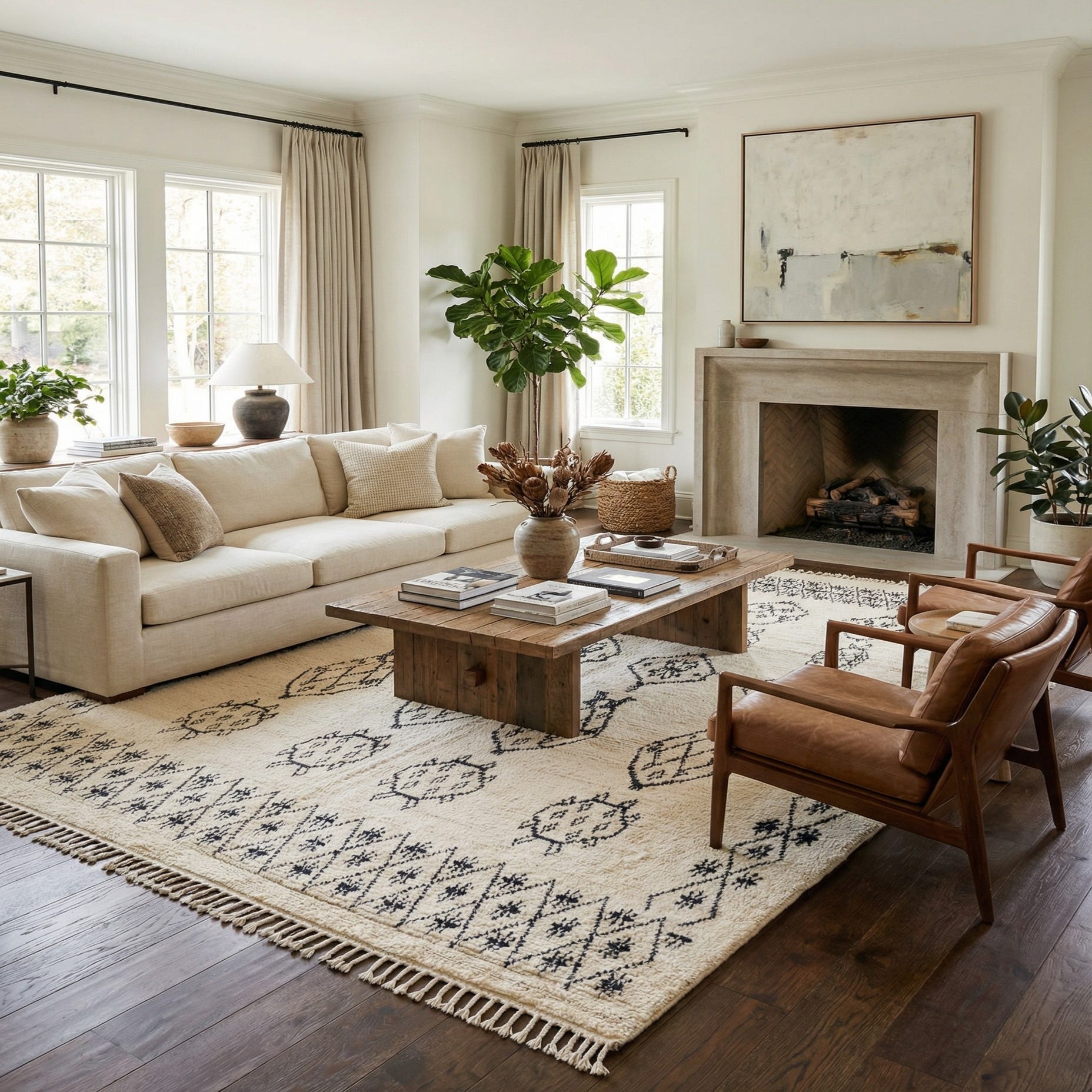 Primary color is Ivory. Colors in this rug include: Ivory, Black.