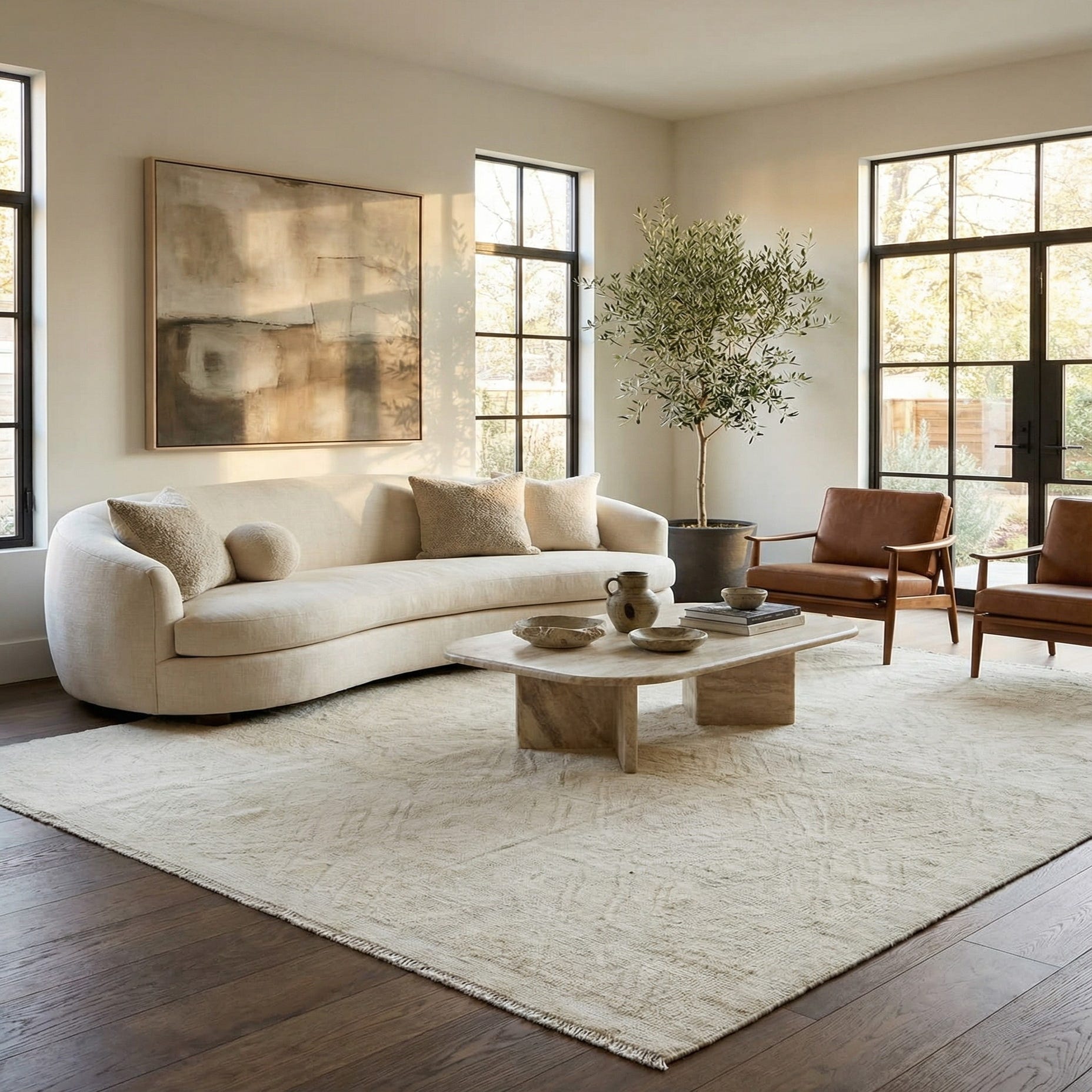 Primary color is Ivory. Colors in this rug include: Ivory, Beige.