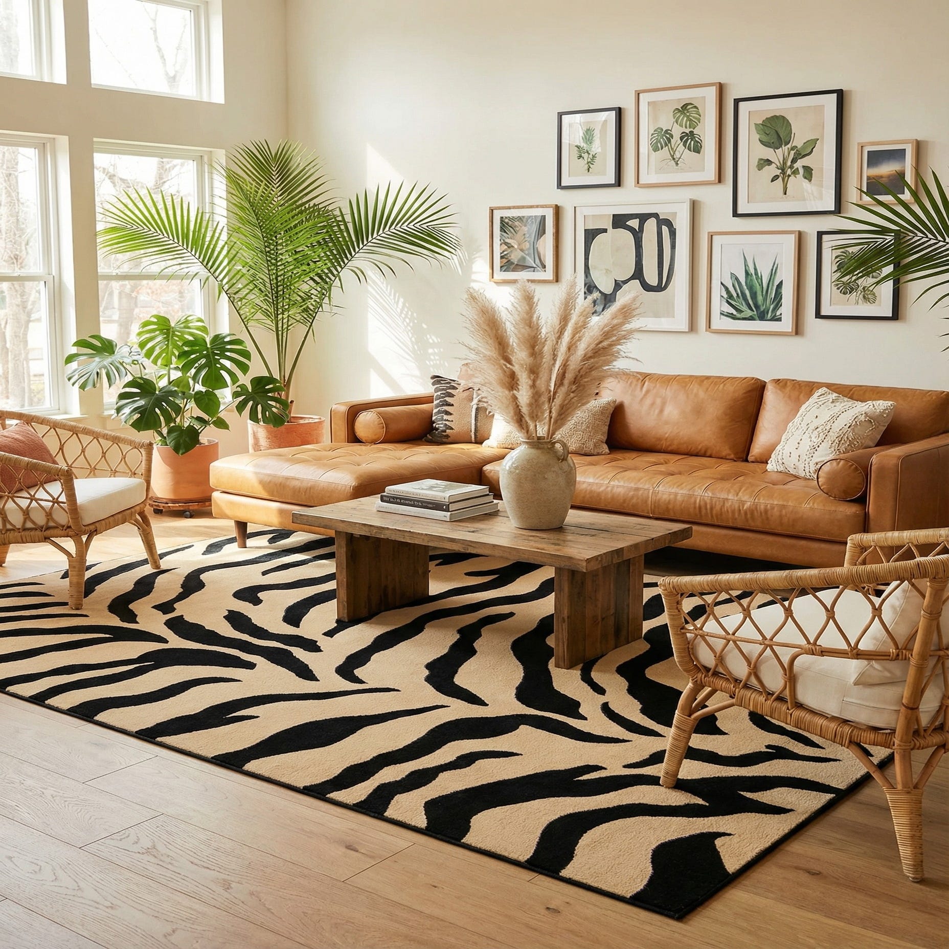 Primary color is Ivory. Colors in this rug include: Ivory, Black.