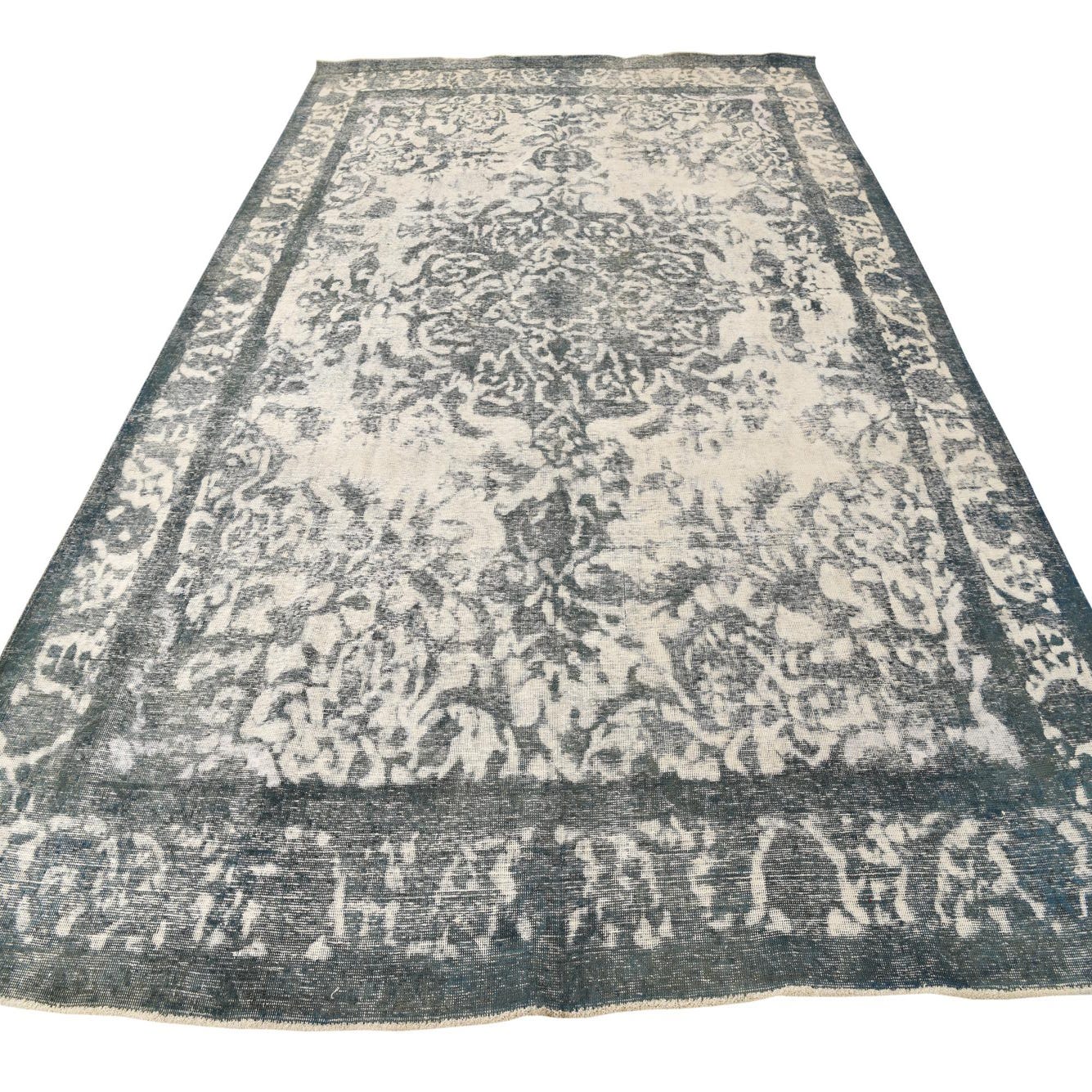 This Persian Ultra Vintage rug is an antique Persian Rug that has been washed, over-dyed, and then shaved down to a low pile. Look at the detail pictures to fully appreciate the uniqueness of this piece.