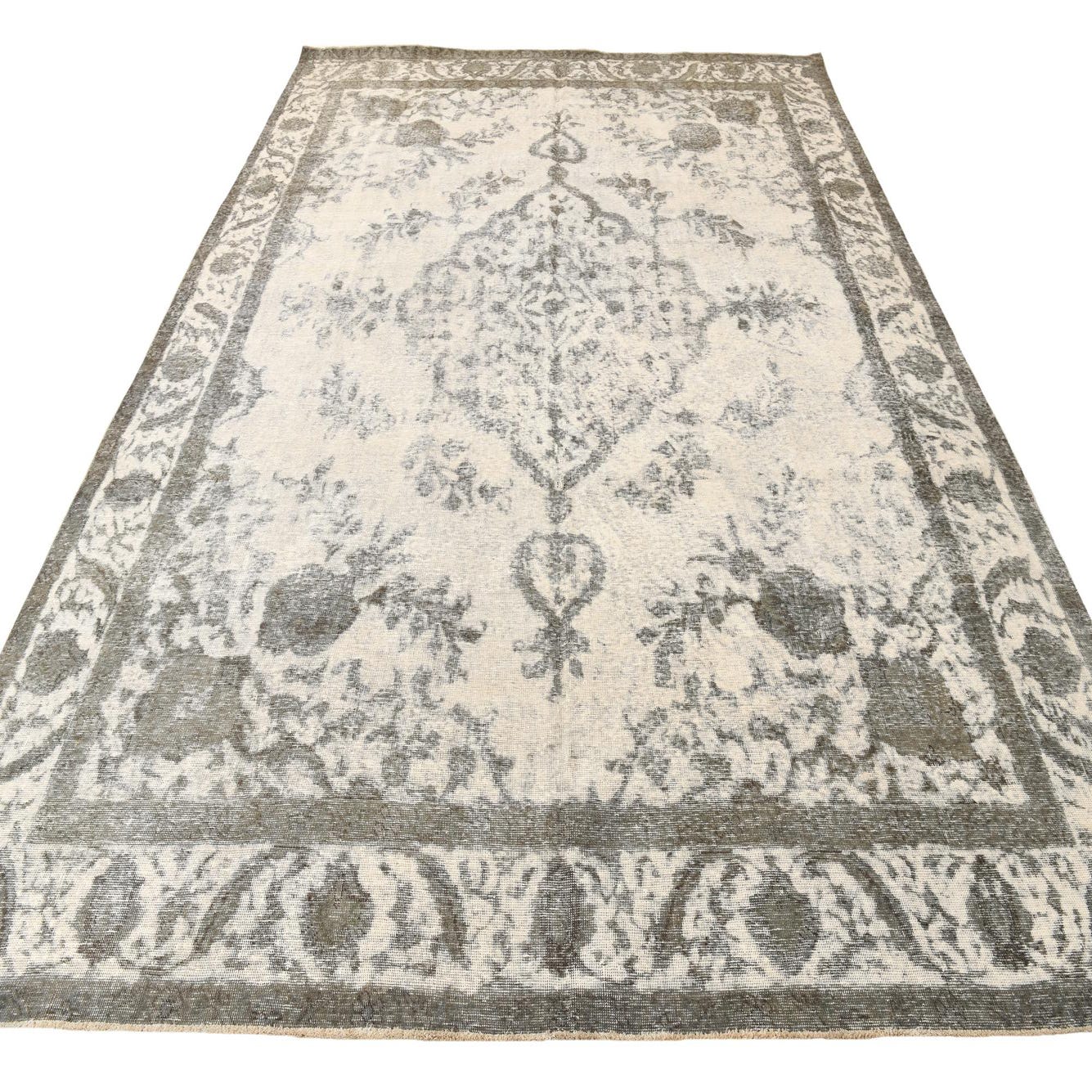 This Persian Ultra Vintage rug is an antique Persian Rug that has been washed, over-dyed, and then shaved down to a low pile. Look at the detail pictures to fully appreciate the uniqueness of this piece.